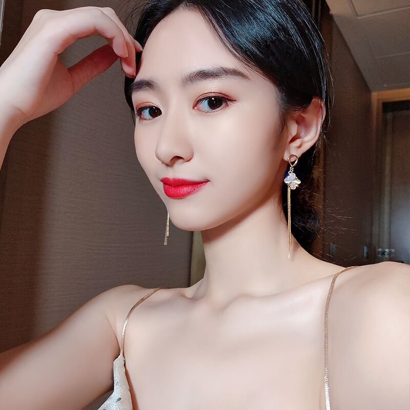 S925 Silver Needle Asymmetric Earrings Fashionable Elegant All-Match Earrings Simple Personality Korean Style Earrings Internet Celebrity Female Tassel