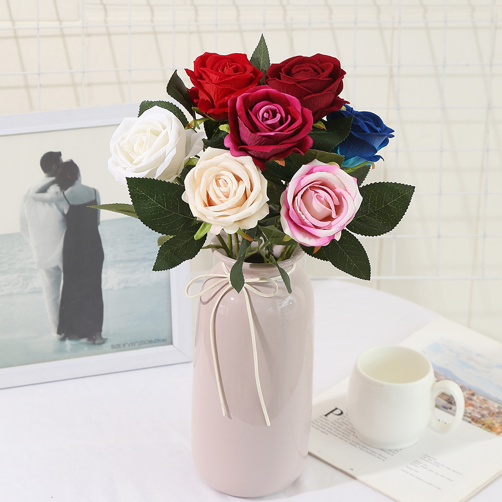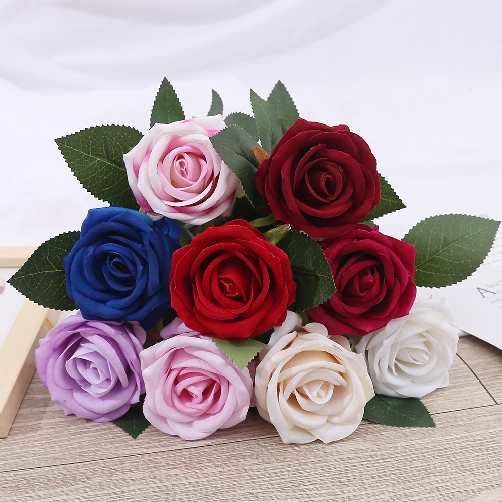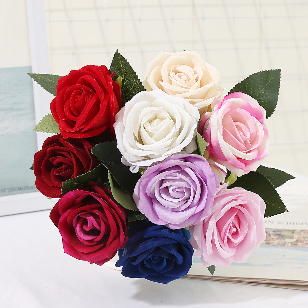 Simulation Single Flannel Rose Wedding Valentine's Day Flower Arrangement Rose Waterfall Background Wall Layout Home Ornamental Flower