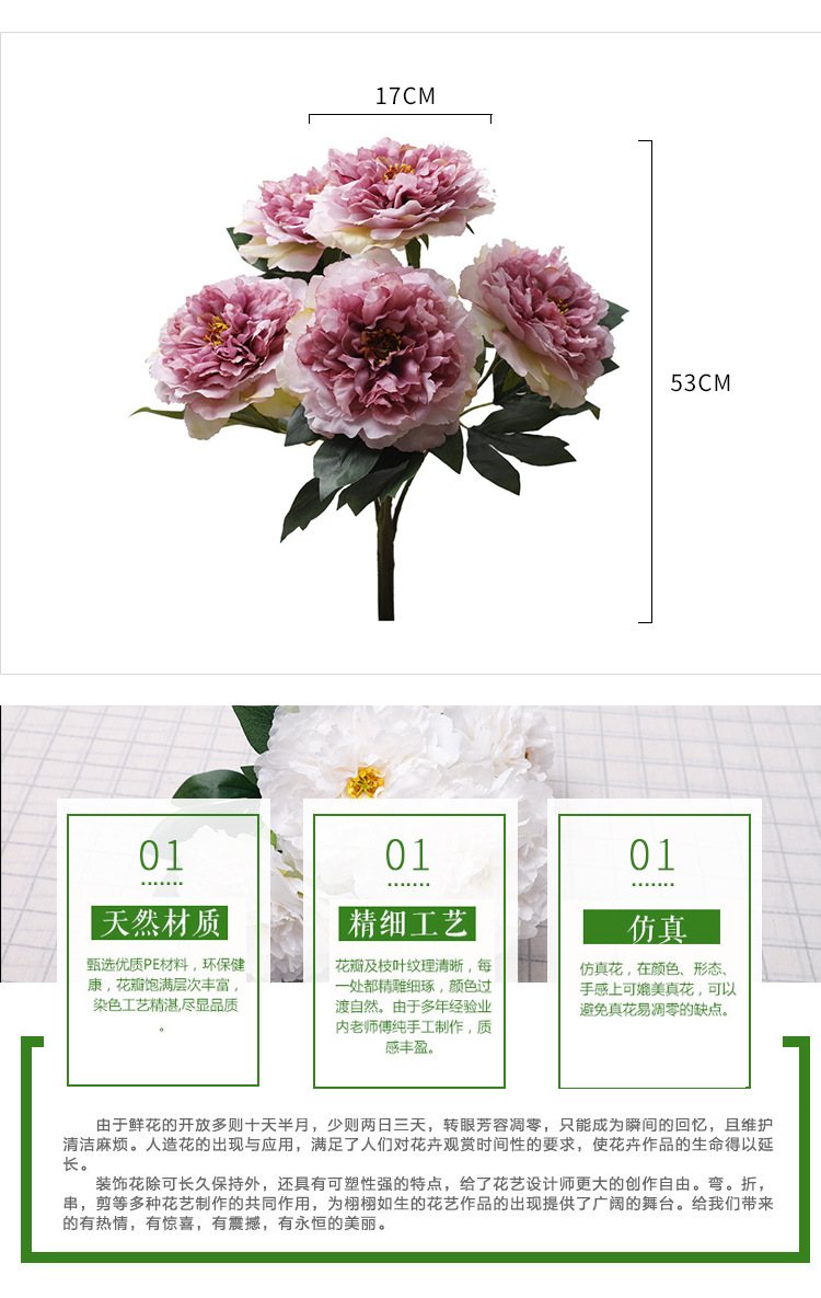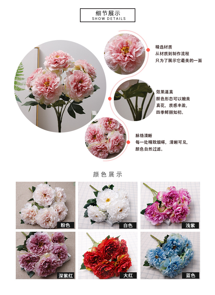 Outdoor Ranunculus Asiaticus Artificial 5-Head Peony Flower Artificial Flower Wedding Wholesale Home Floral Indoor and Outdoor Decoration Artificial Flower