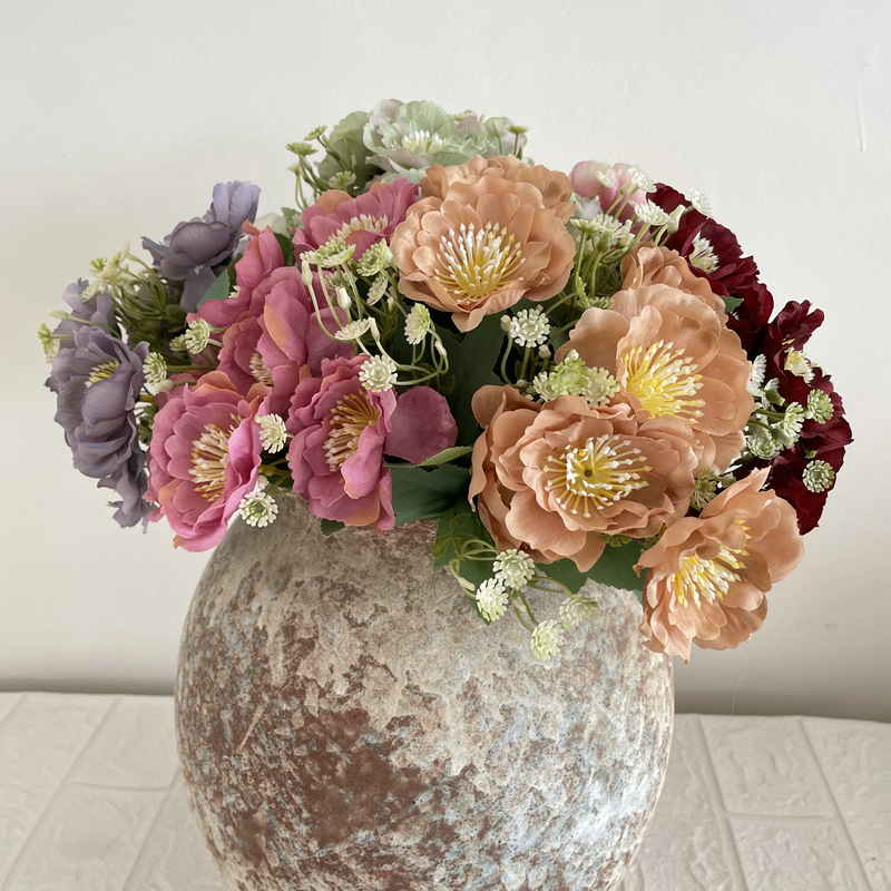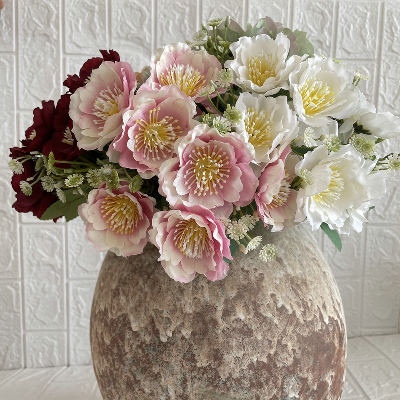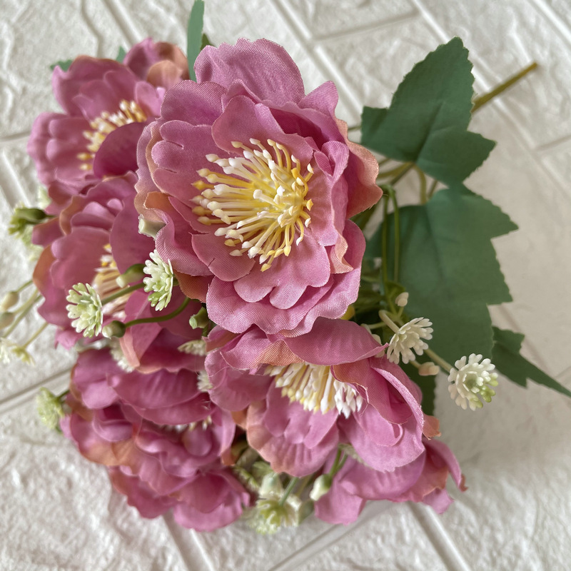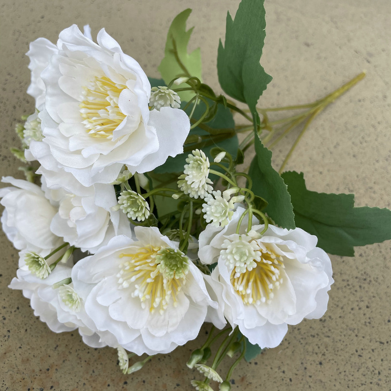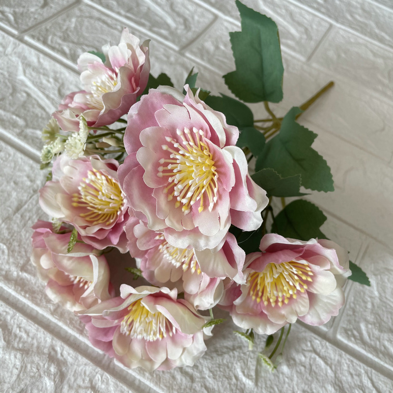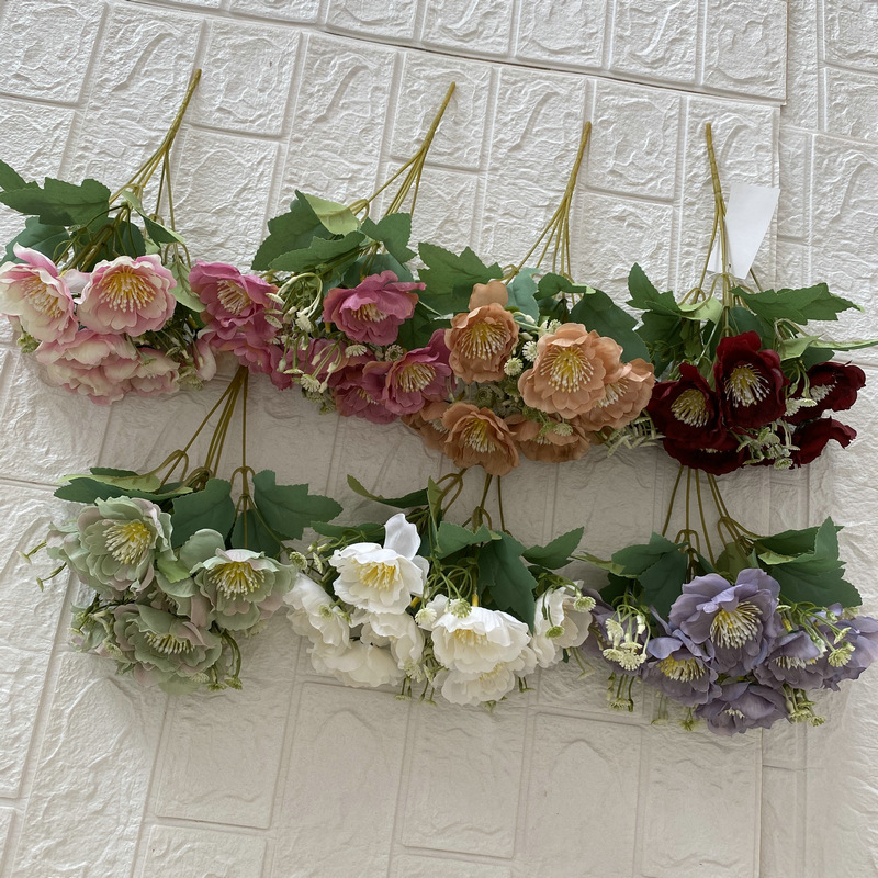 Coating Cloth 7-Head Cherry Blossom Handle Bedroom Balcony Decoration Fake Flower Decoration Project Sales Office Simulation Artificial Flowers Wholesale