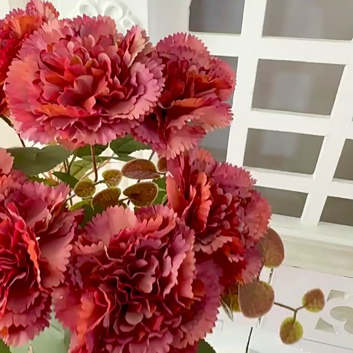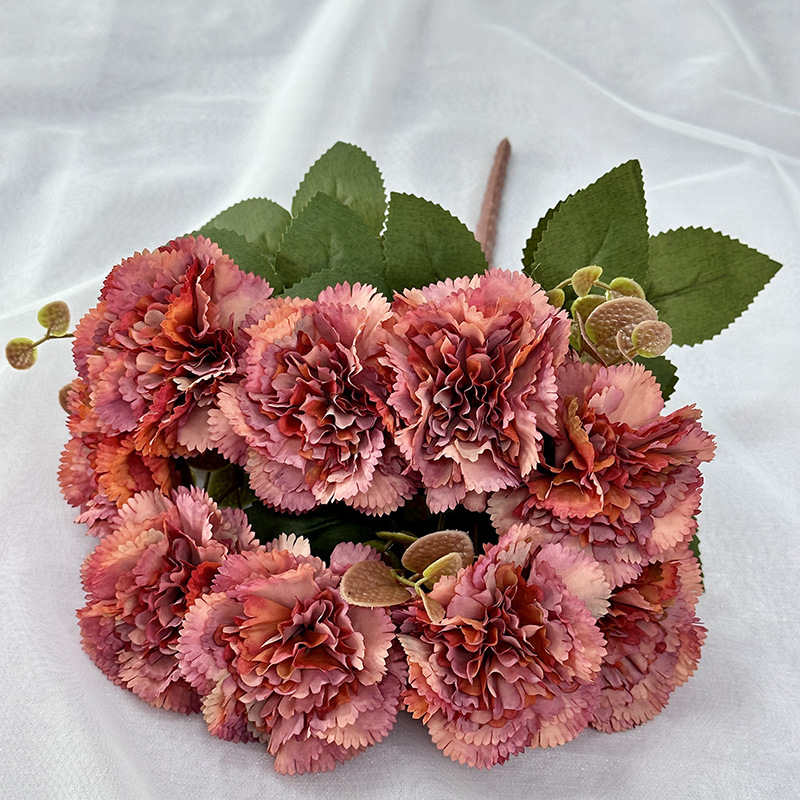 Cross-Border New Arrival Artificial Flower 9 Carnation Coating Cloth Material Fake Flower Holiday Hotel Dress up Ornamental Flower Wholesale