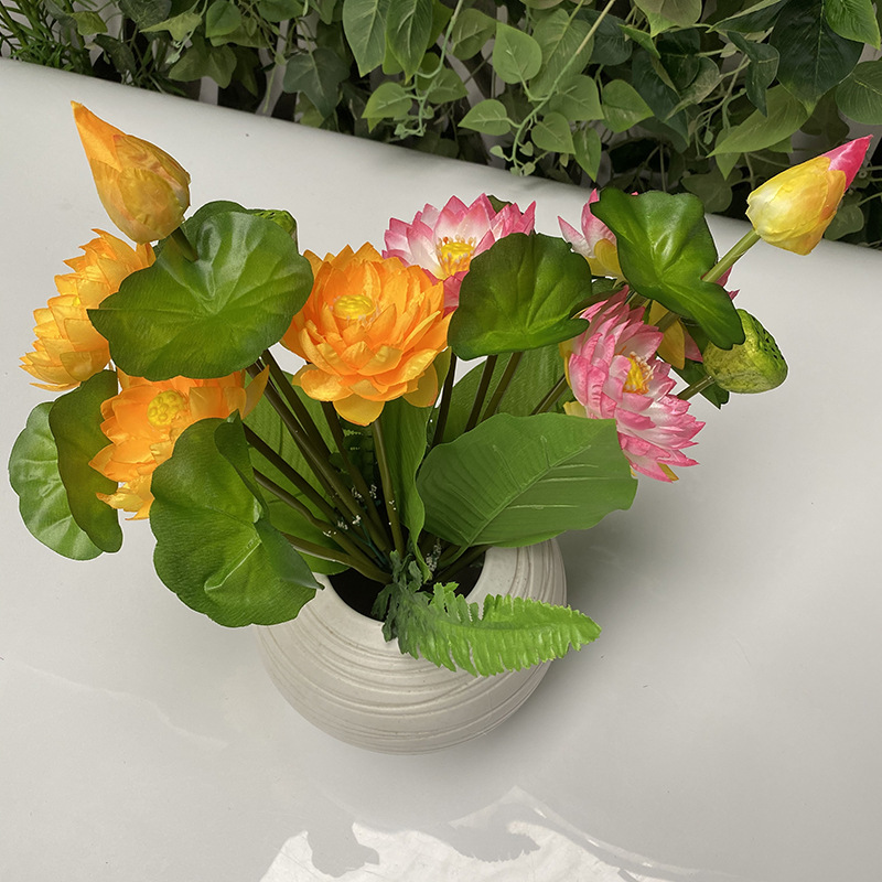 9-Head Simulation Lotus Bunches Chinese Restaurant Teahouse Ground Floriculture Fish Pool Ornamental Flower Dance Performance Props
