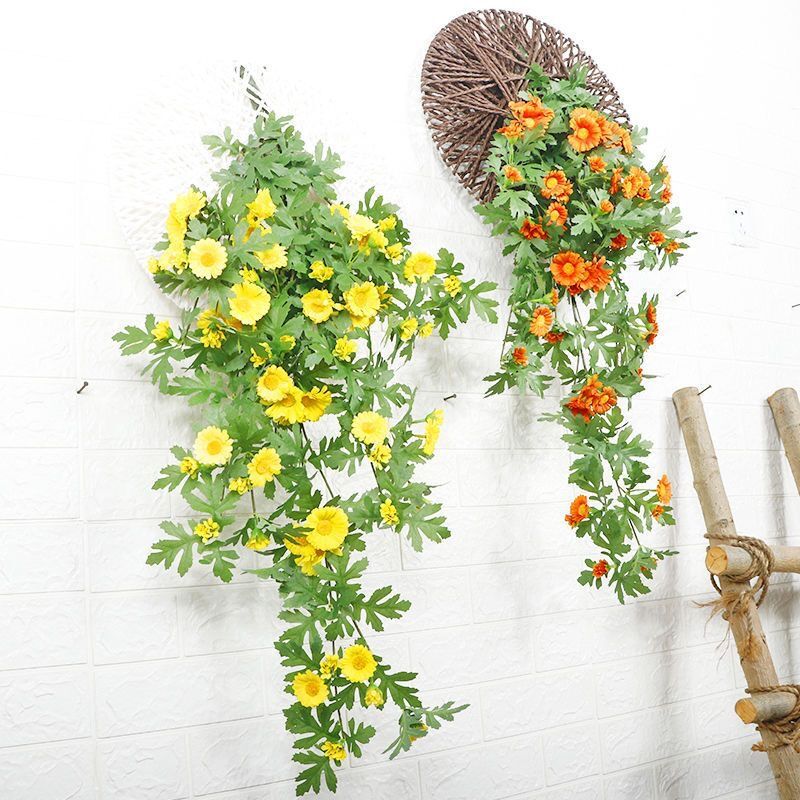 Artificial Daisy Wall Hanging Hanging Orchid Wall Plastic Fake Flower Rattan Decoration Indoor Living Room Hanging Basket Wall Plant Vine