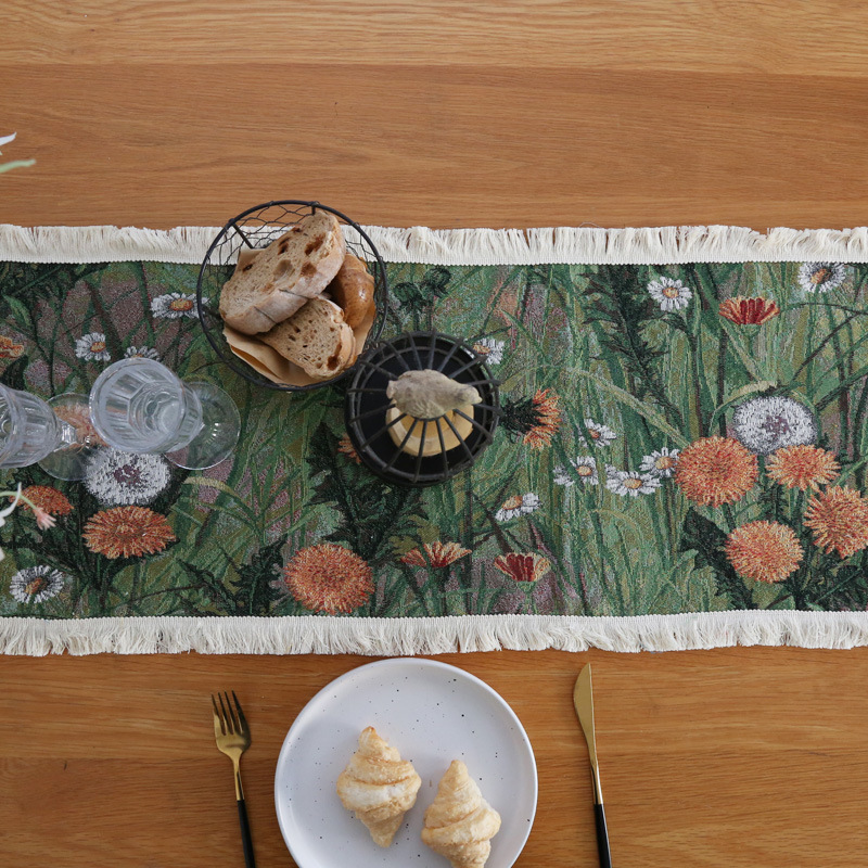 retro green flower table runner oil painting style sideboard flag fabric american coffee table tv cabinet long tablecloth wholesale
