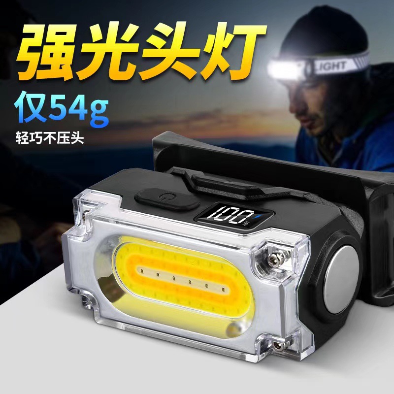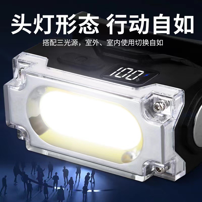 new light outdoor lighting multifunctional headlamp work light with digital power display type-c charging cap light