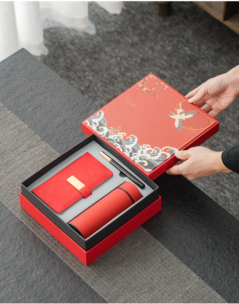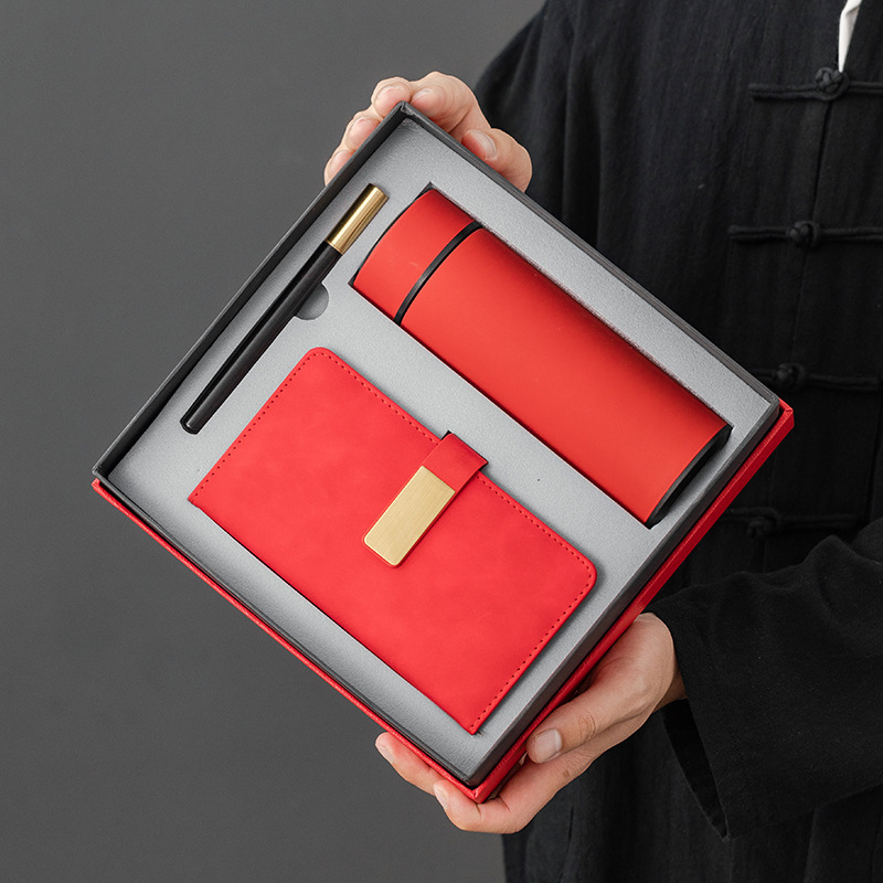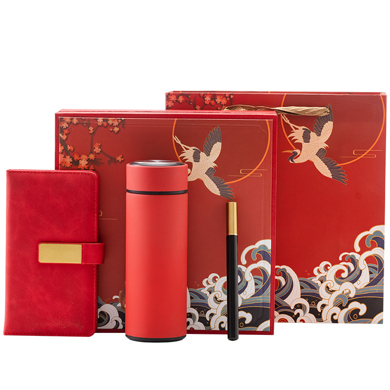 red thermos cup notebook three-piece set
