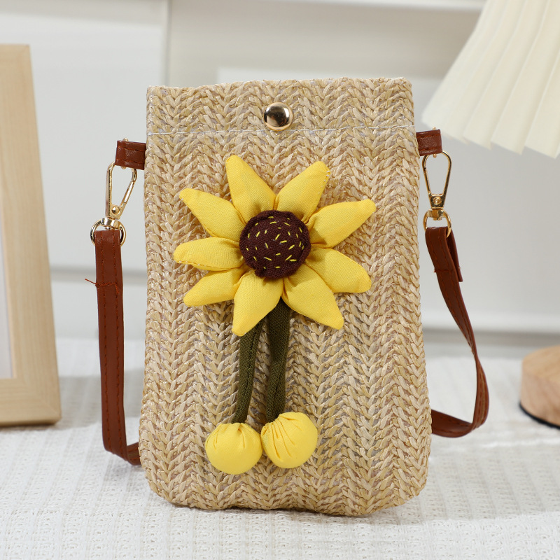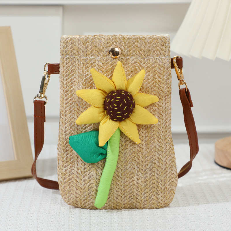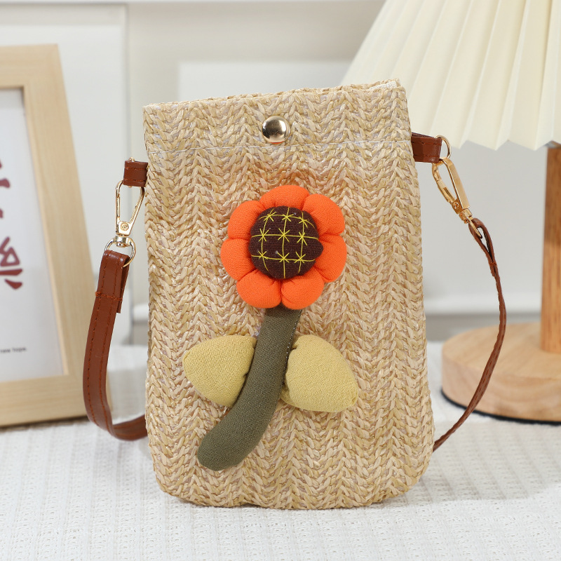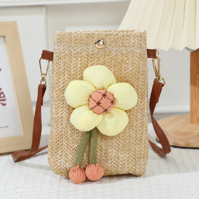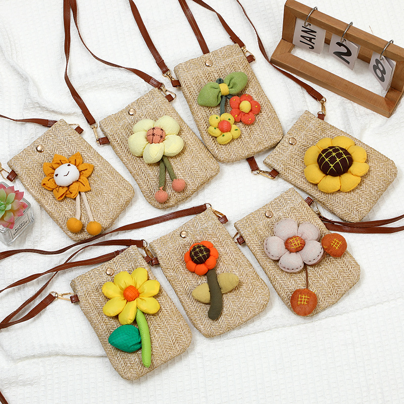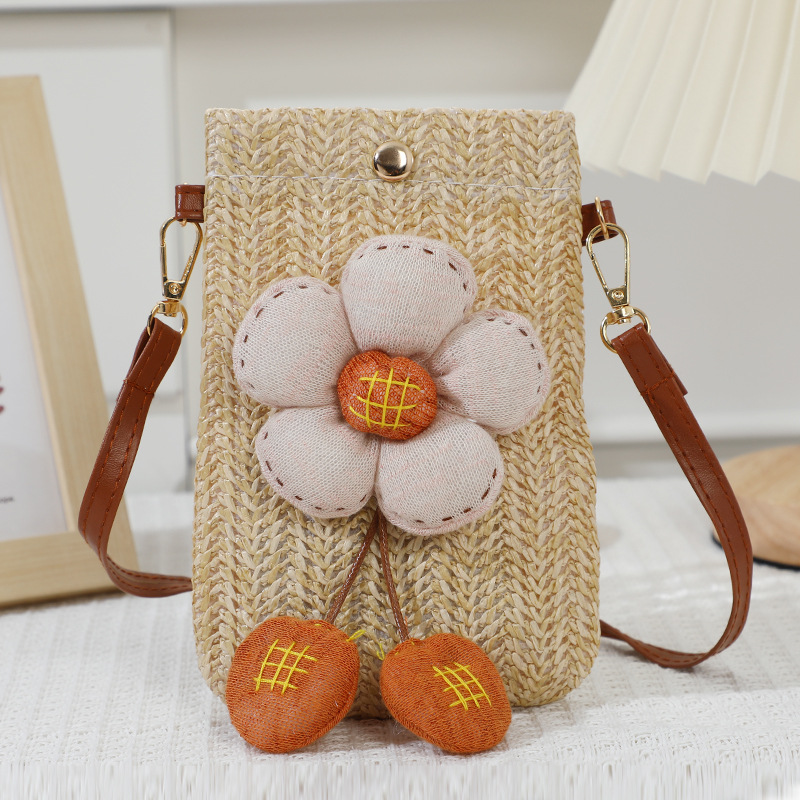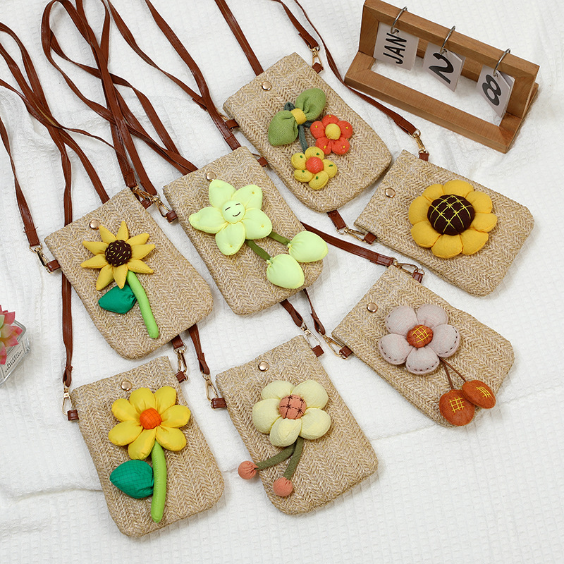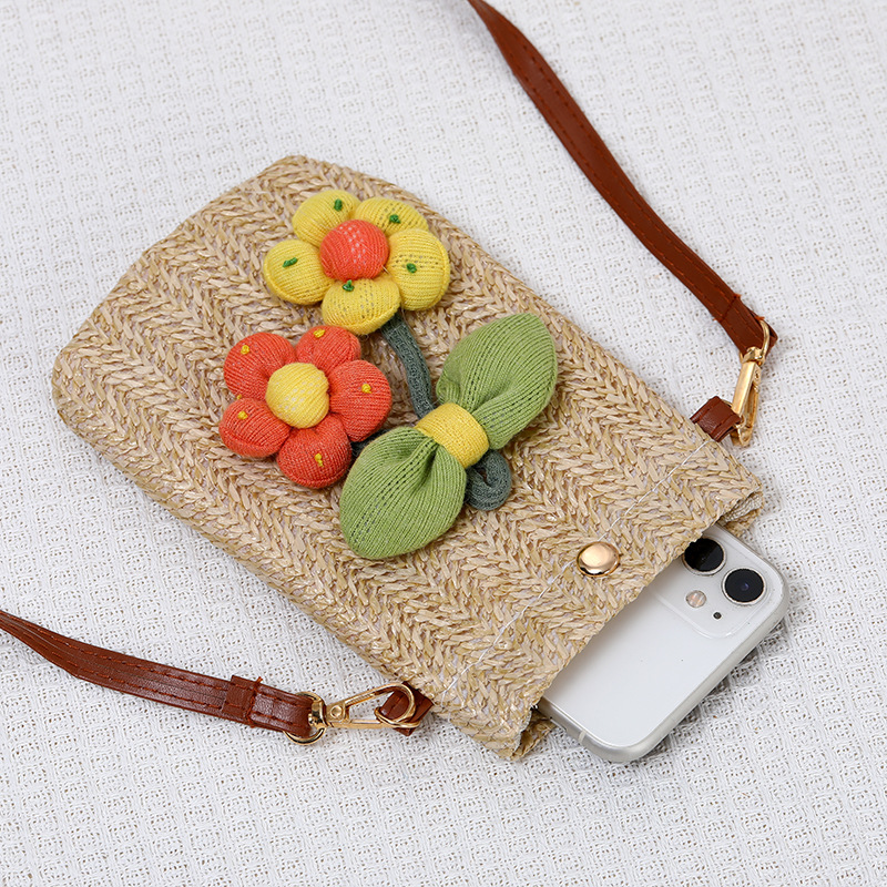 summer walking lightweight mobile phone bag bag women's crossbody 2024 new western style woven straw bag mini backpack