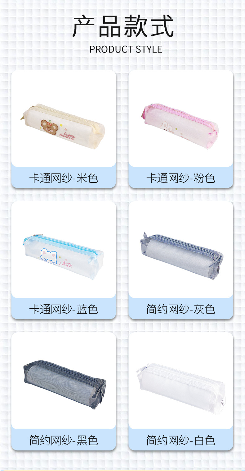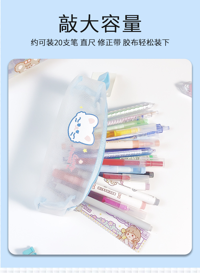 transparent mesh pencil bag ins japanese stationery box girls middle school students stationery case exam simple large capacity pen case