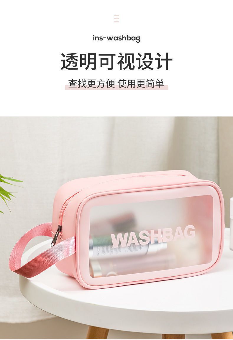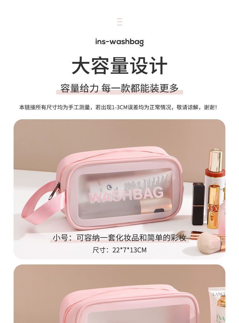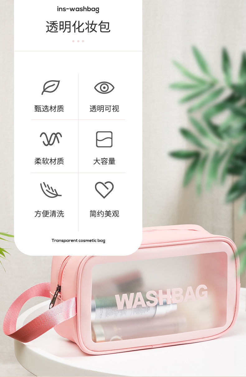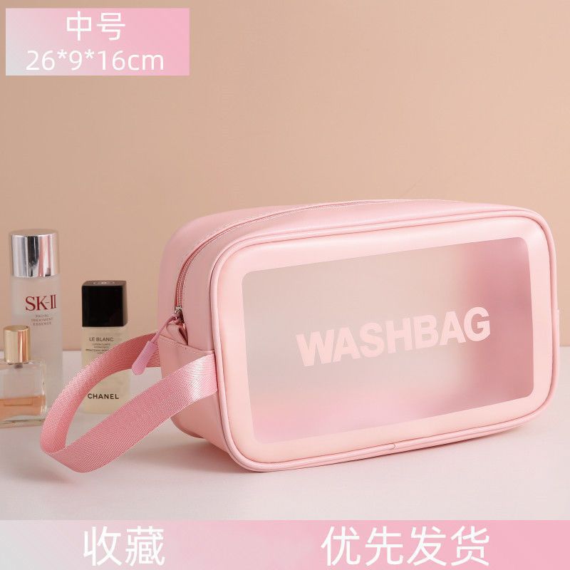 transparent cosmetic bag -- pink large-sized