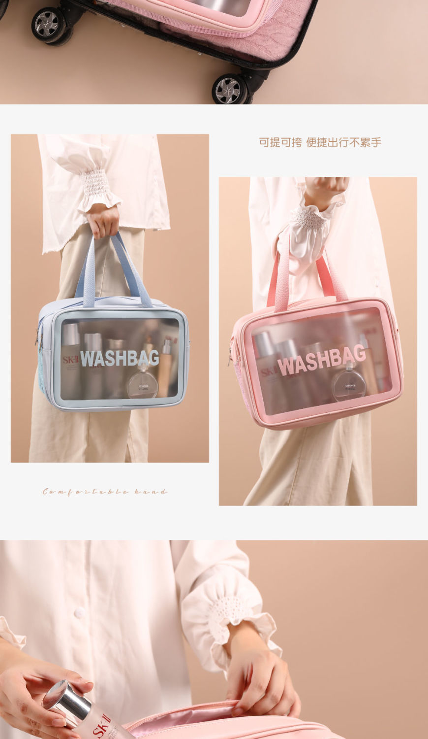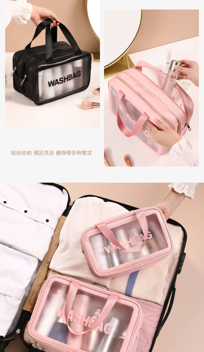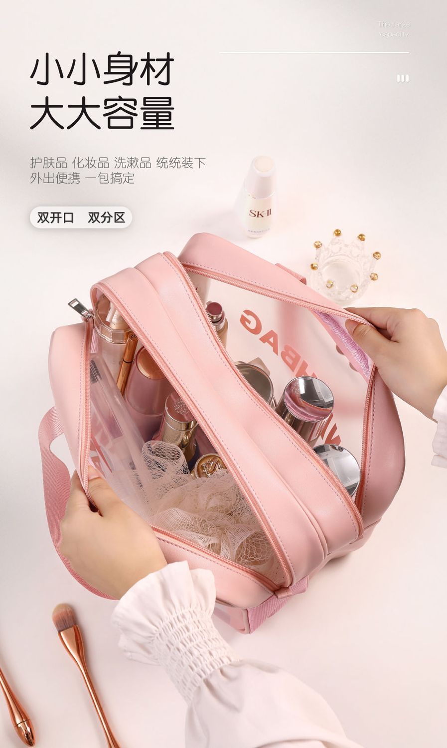 transparent cosmetic bag -- pink large-sized
