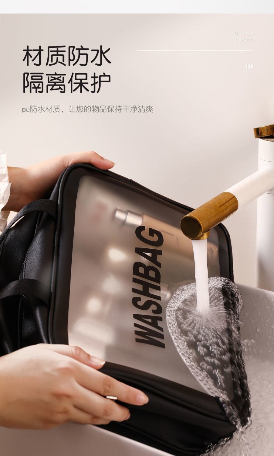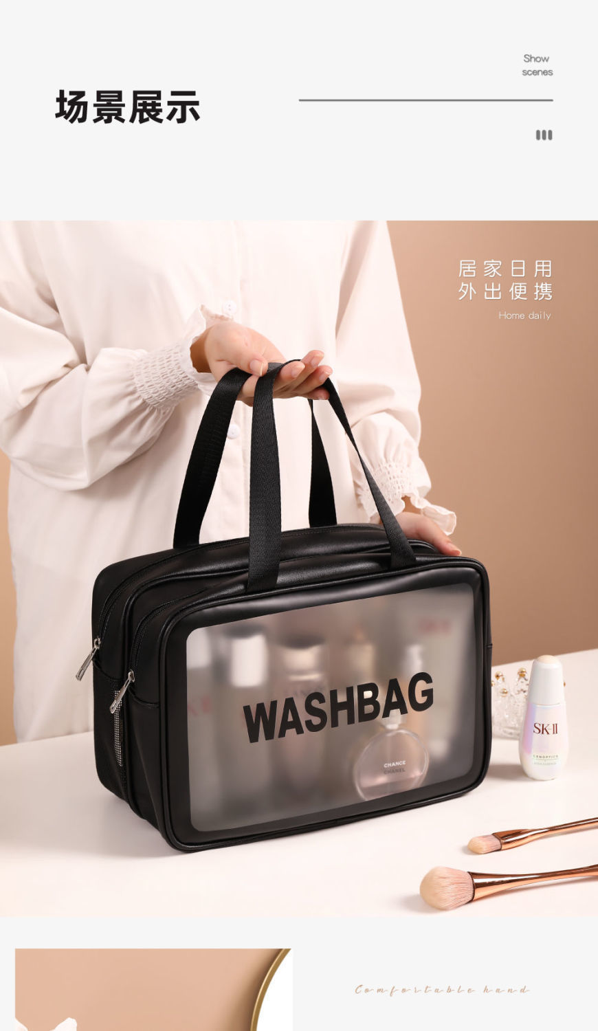 transparent cosmetic bag -- white large size