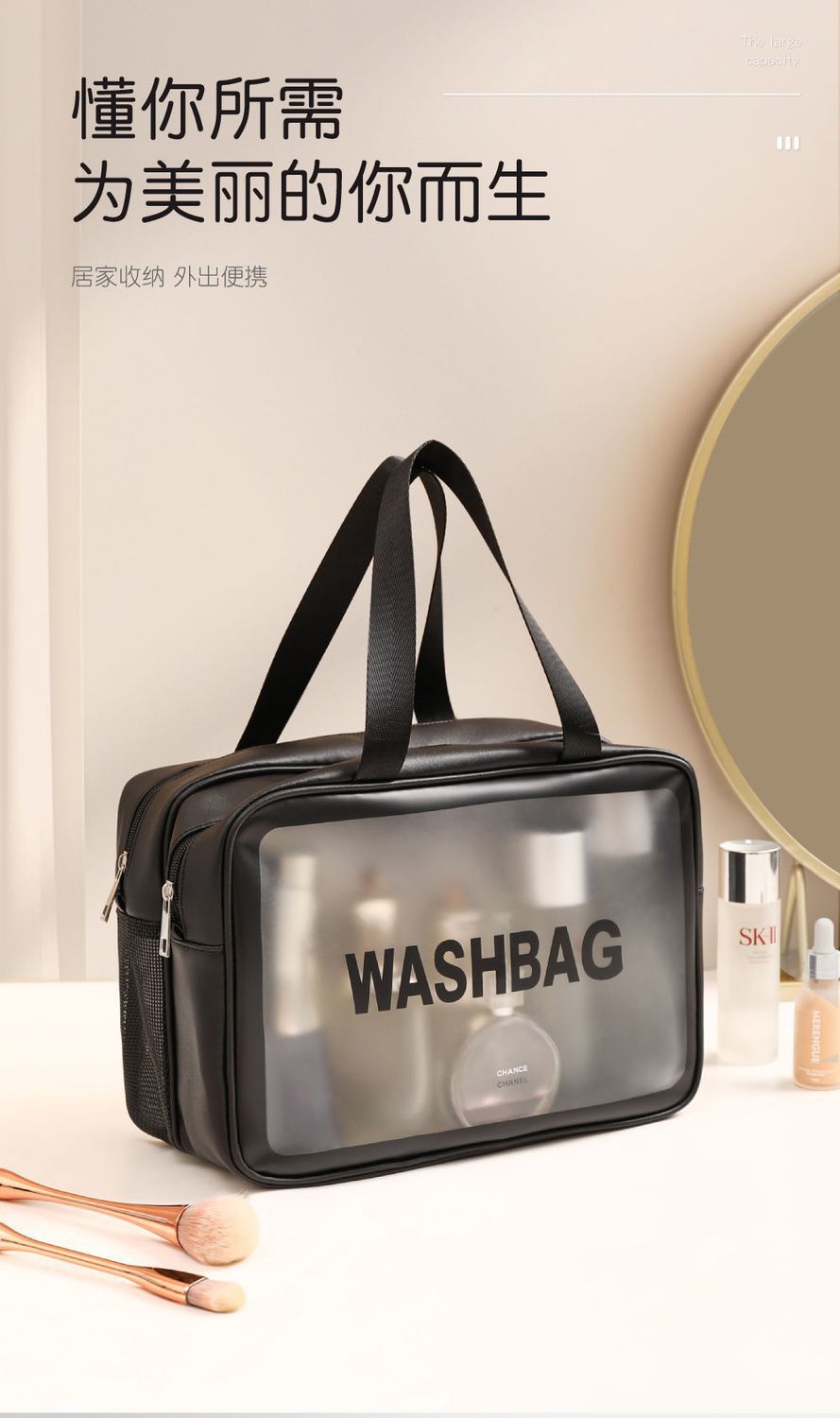 transparent cosmetic bag -- black large