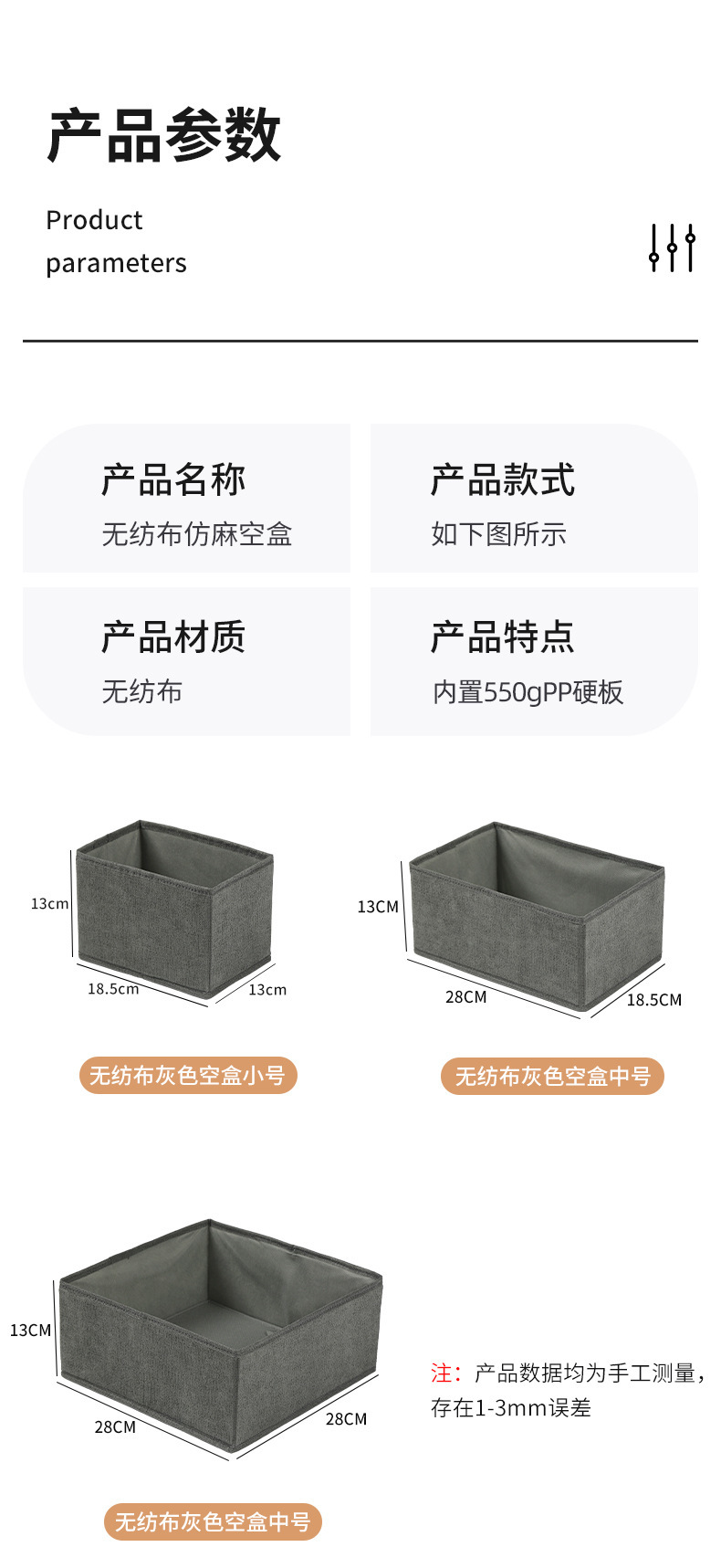 gray non-woven fabric small [zipper]]