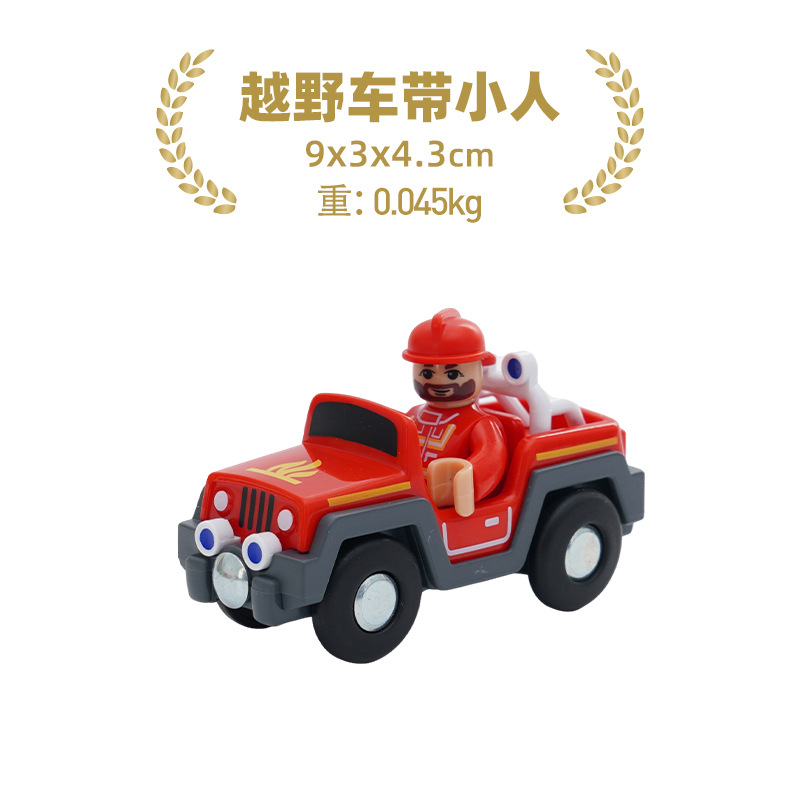plastic red farm car with villain