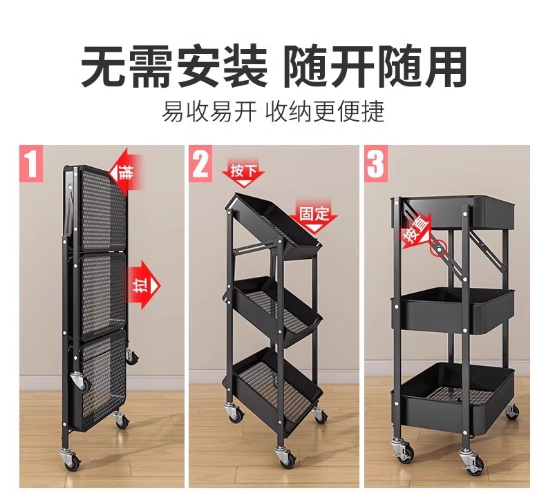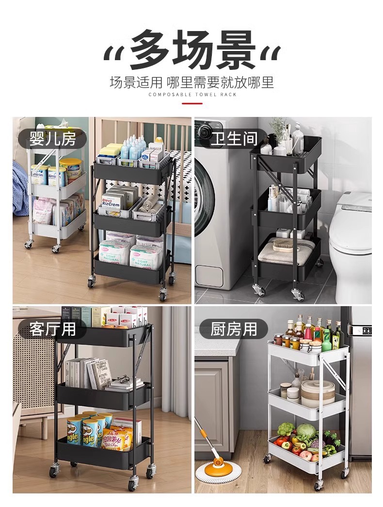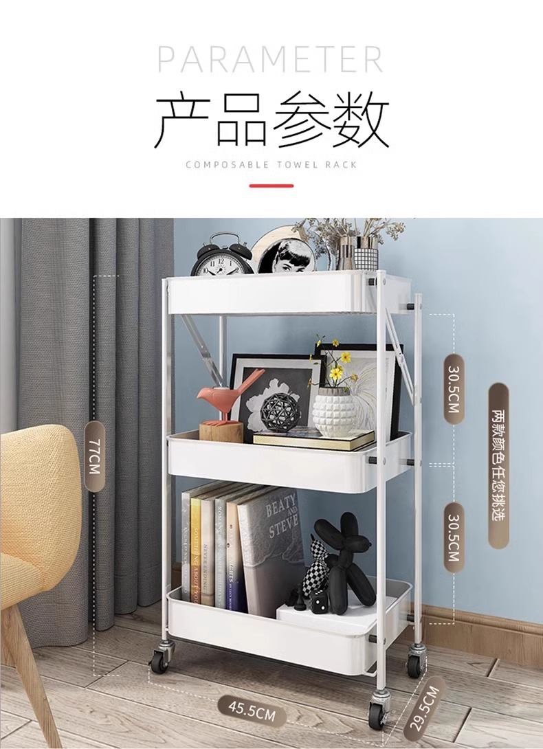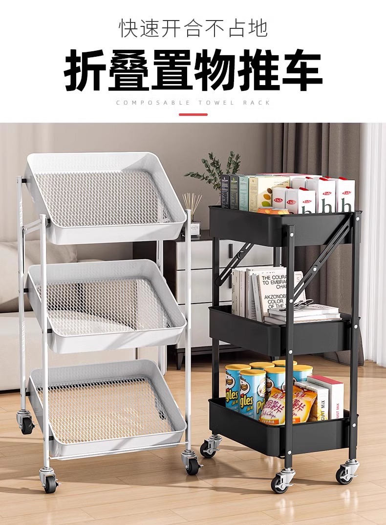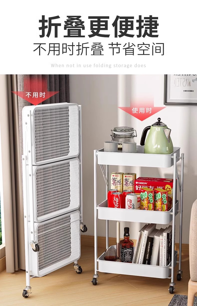 Trolley Rack Folding Floor Multi-Layer Household Multi-Functional Snack Removable Storage Article Storage Shelf