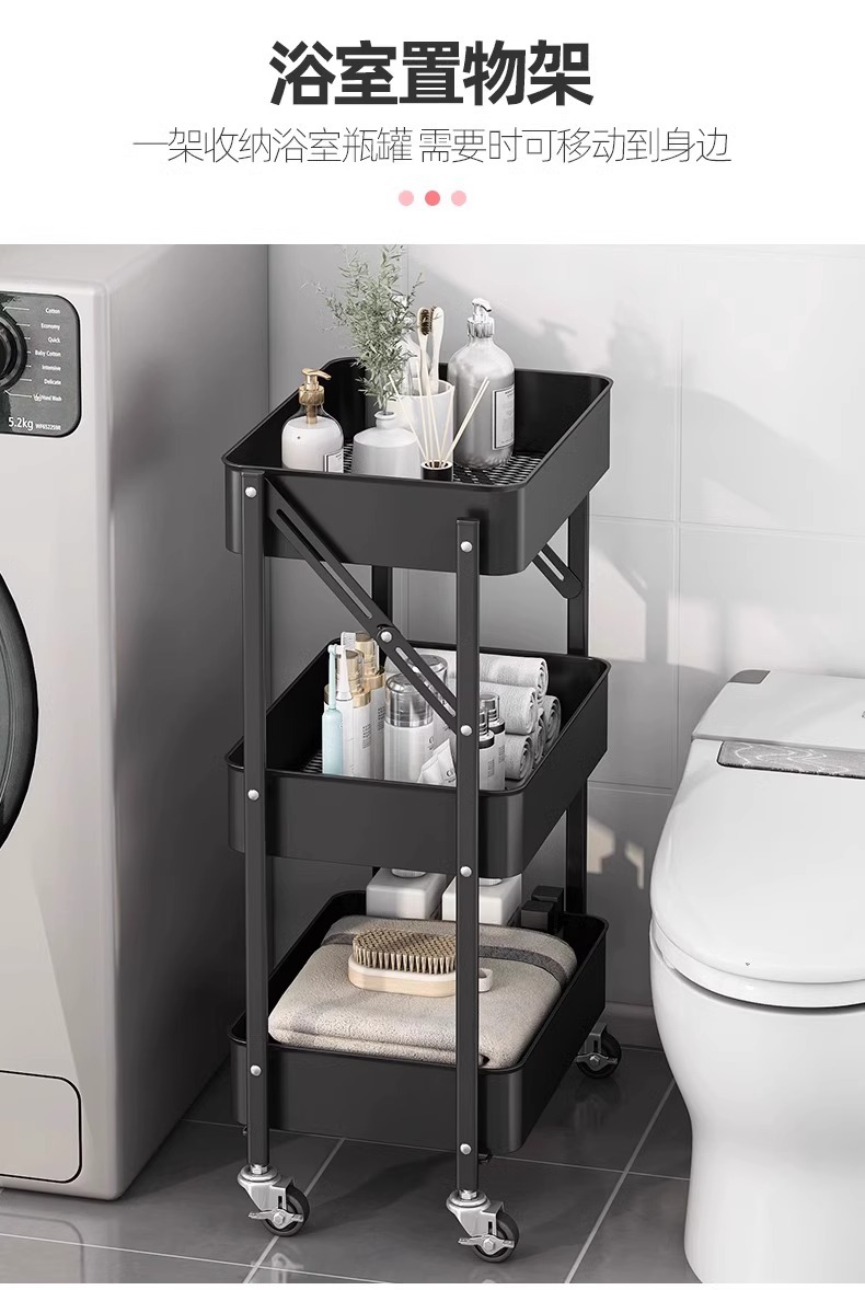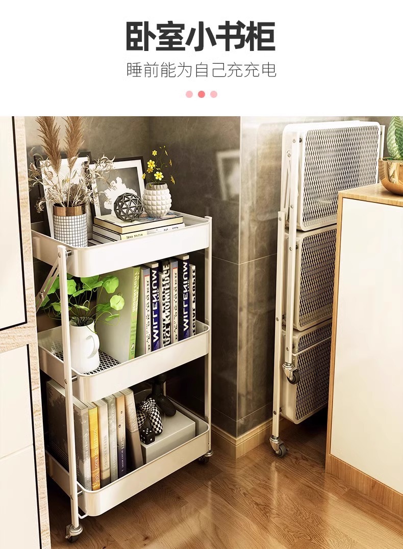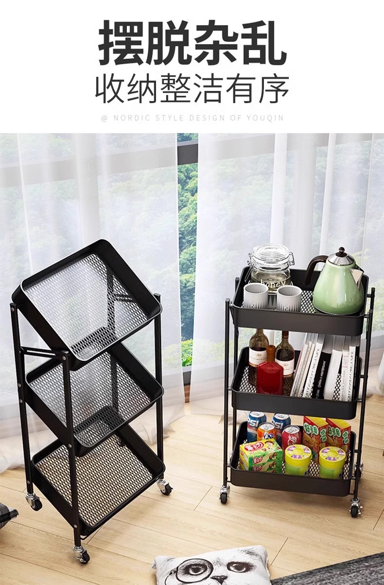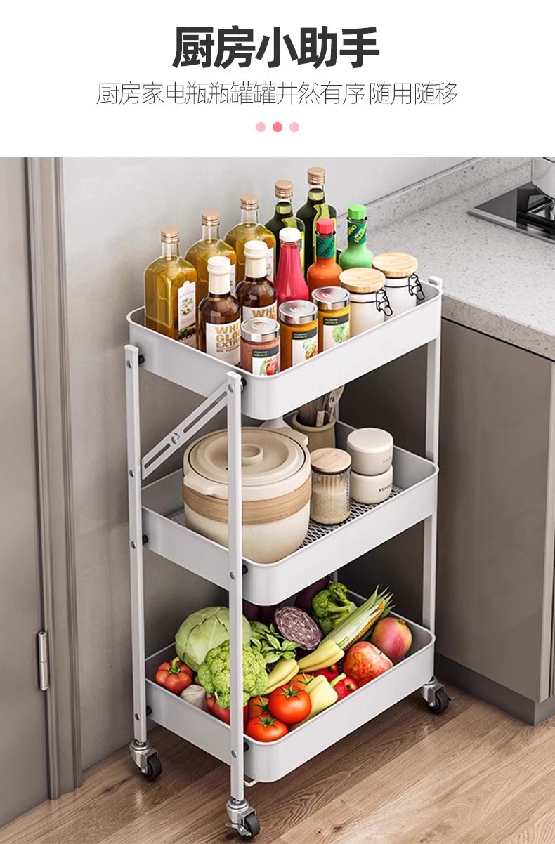 Trolley Rack Folding Floor Multi-Layer Household Multi-Functional Snack Removable Storage Article Storage Shelf