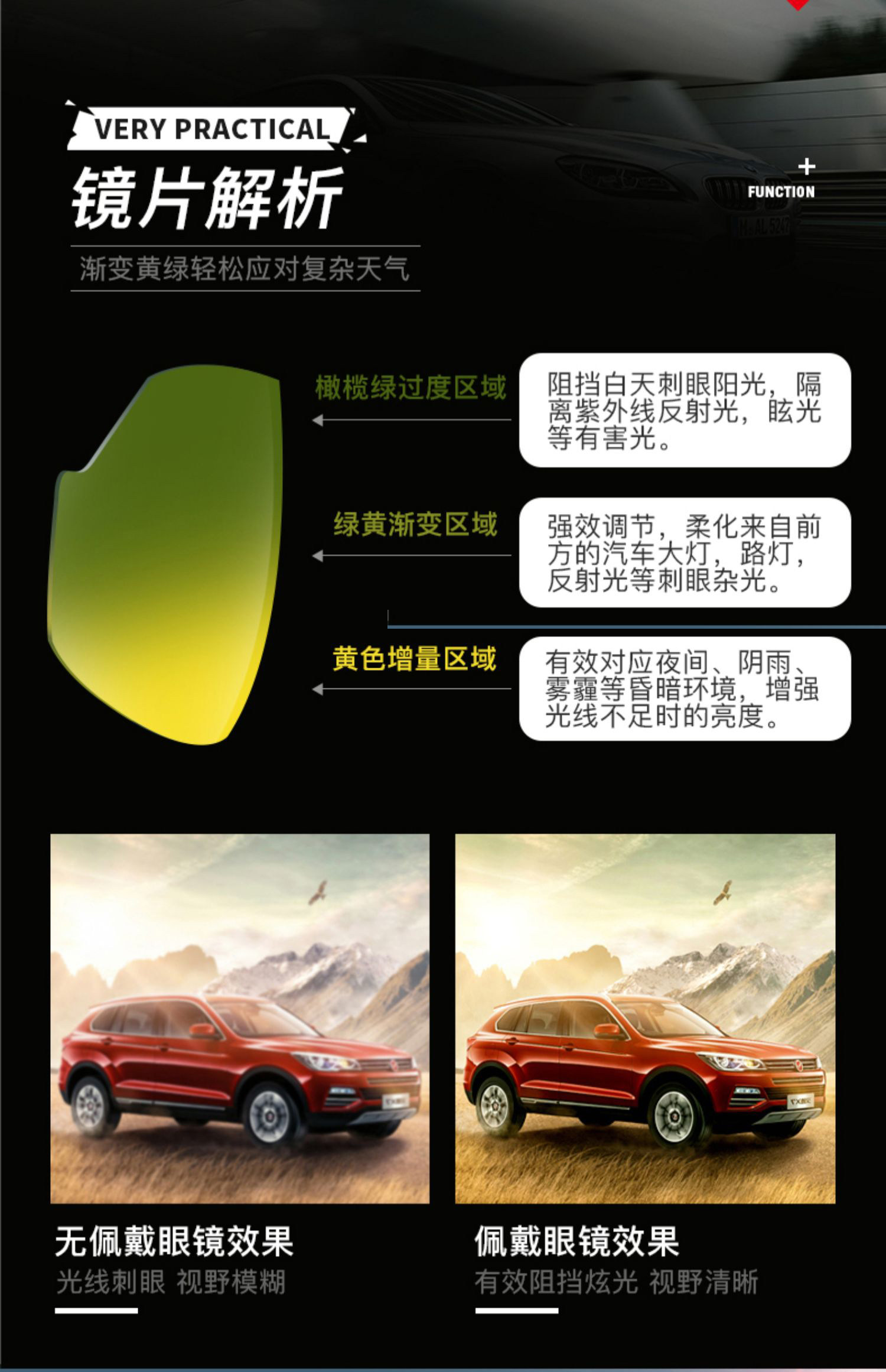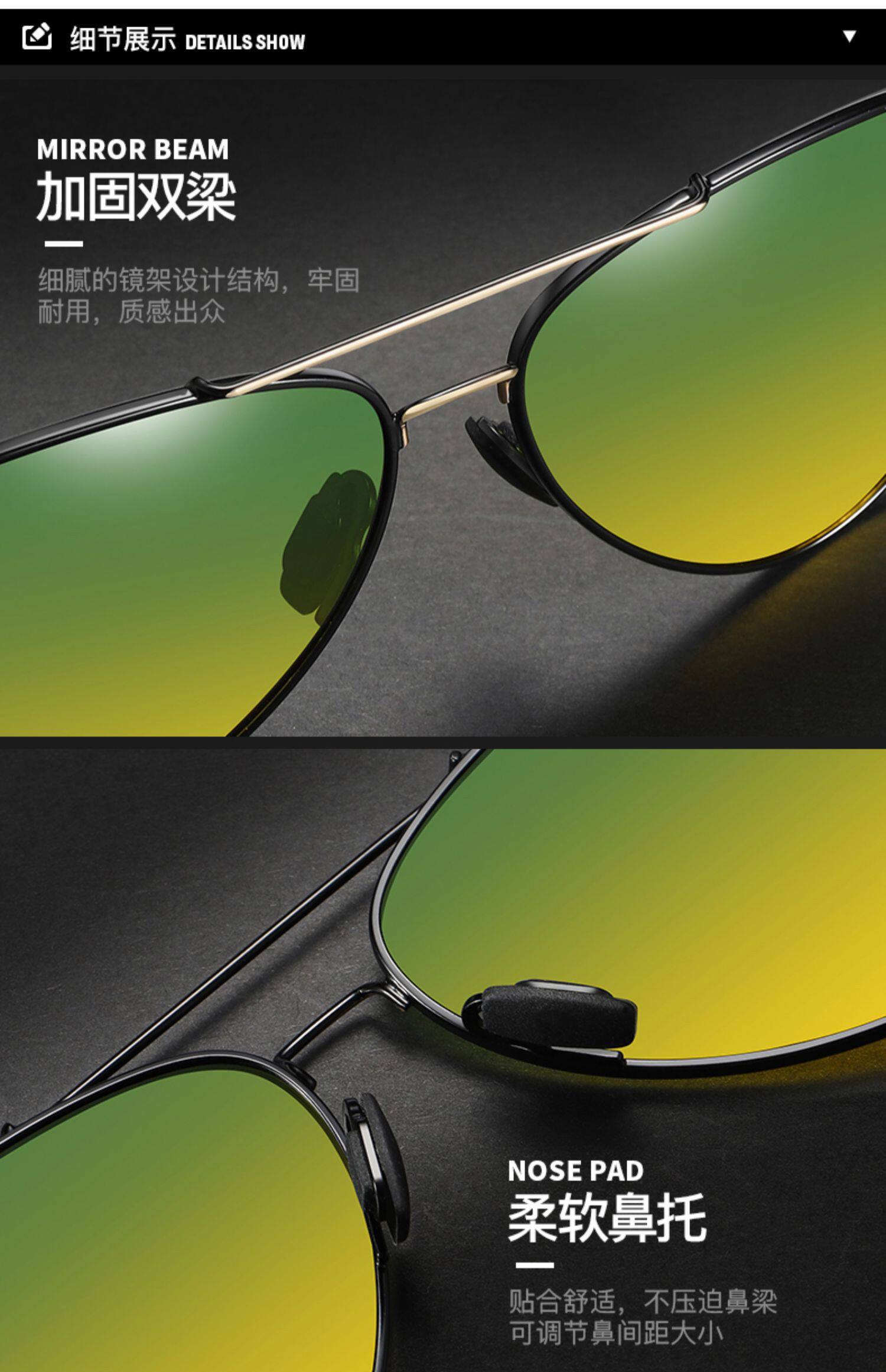 black gold frame-day and night dual-use reflective lenses