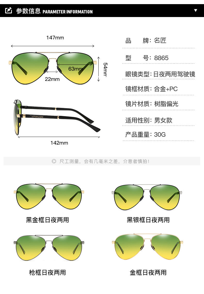 gold frame-day and night dual-use reflective lenses