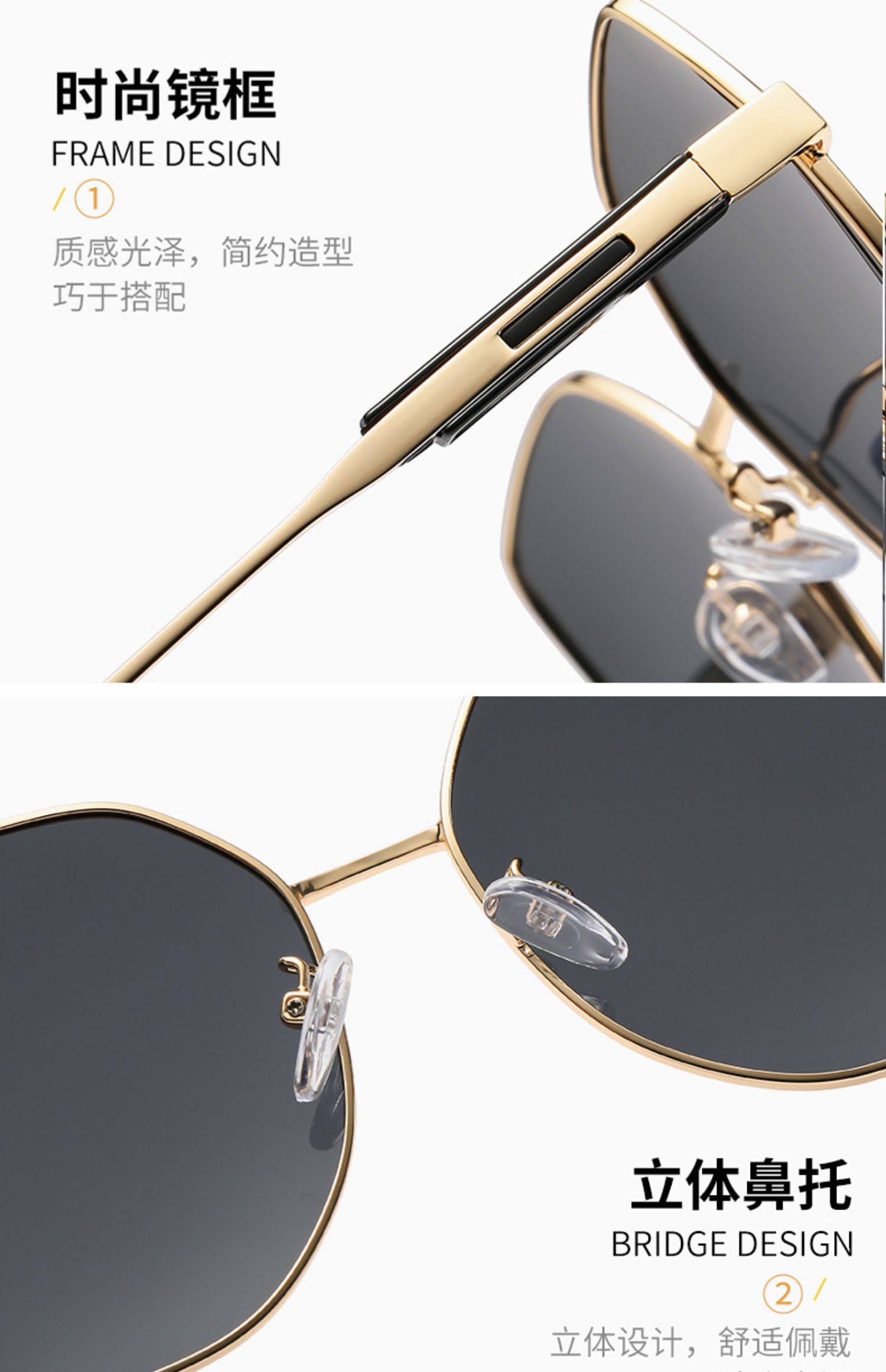 black gold frame black and grey lens