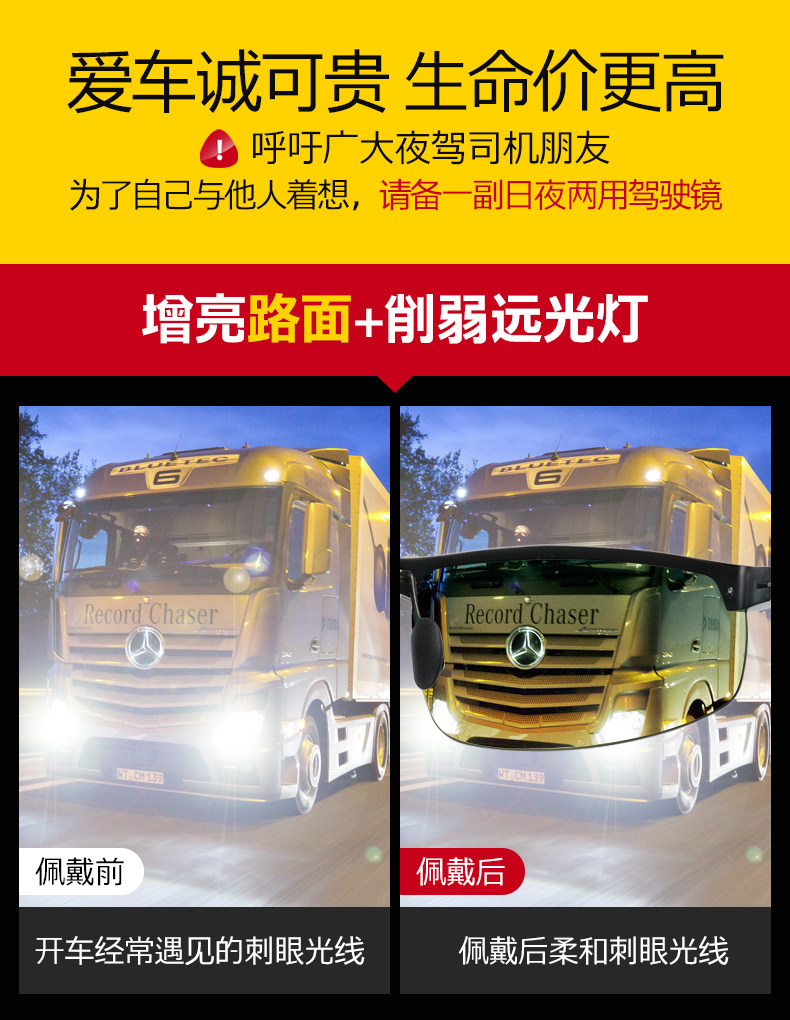 black frame-yellow and green pieces (day and night dual-use reflective lenses)