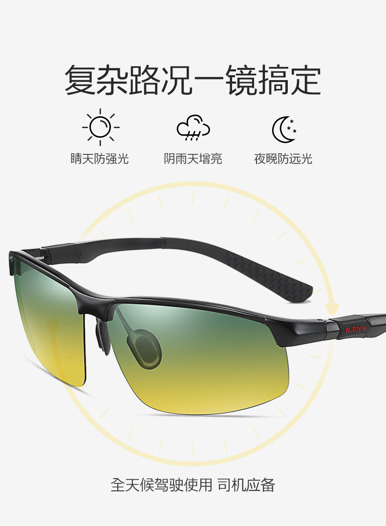 silver frame-yellow and green pieces (day and night dual-use reflective lenses)