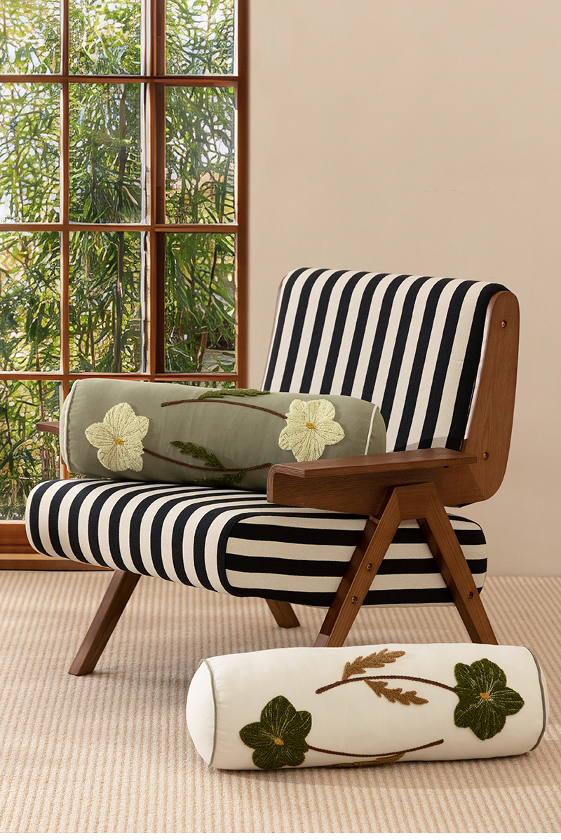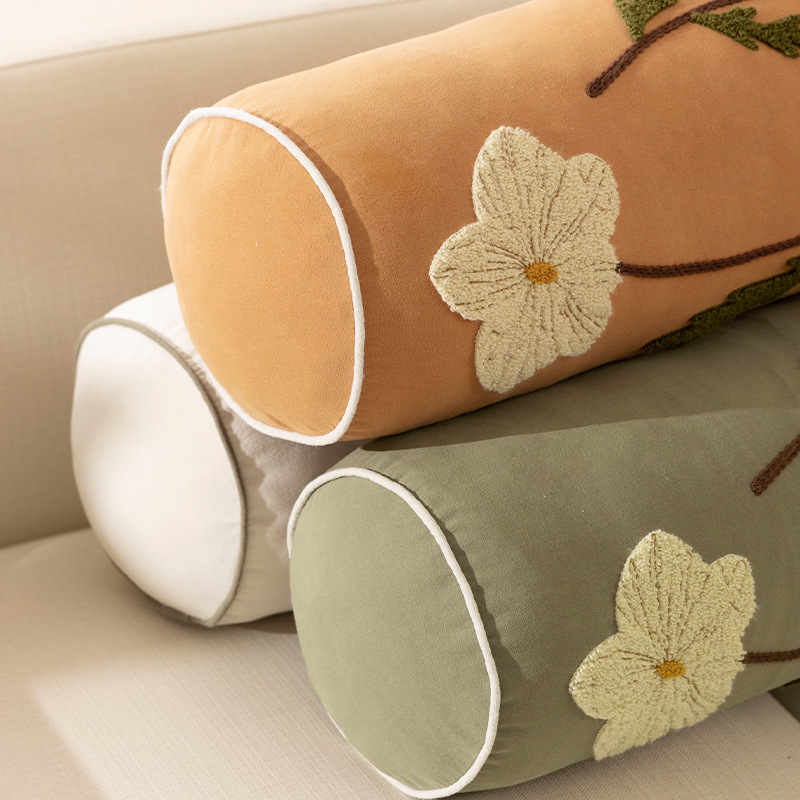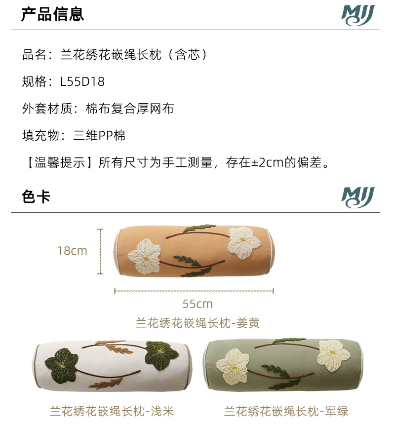 Orchid embroidery with rope insertion long pillow (with core)