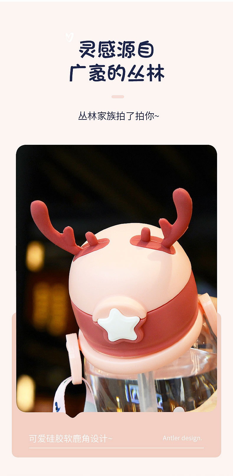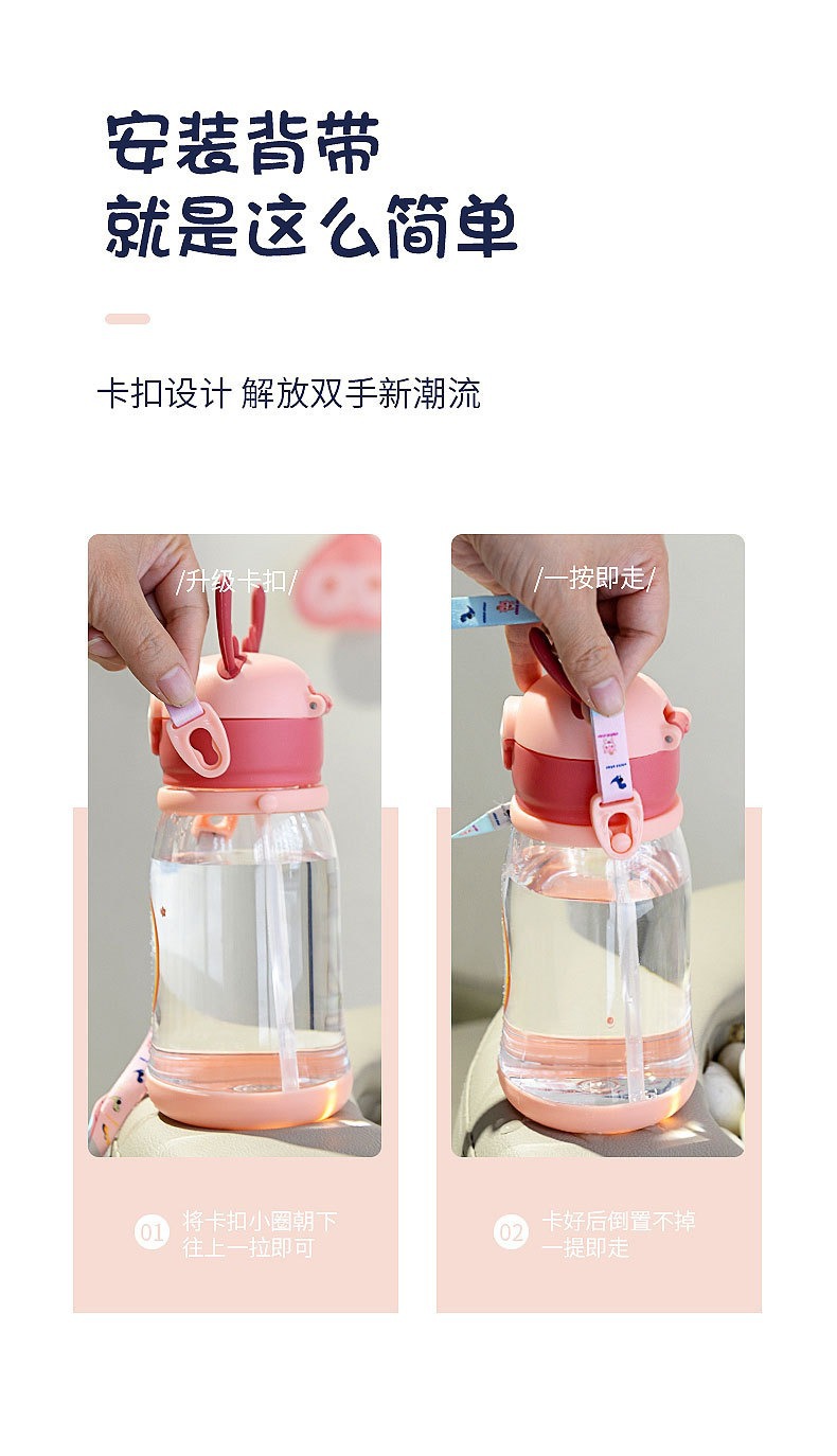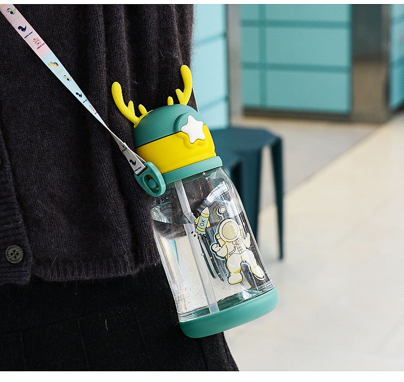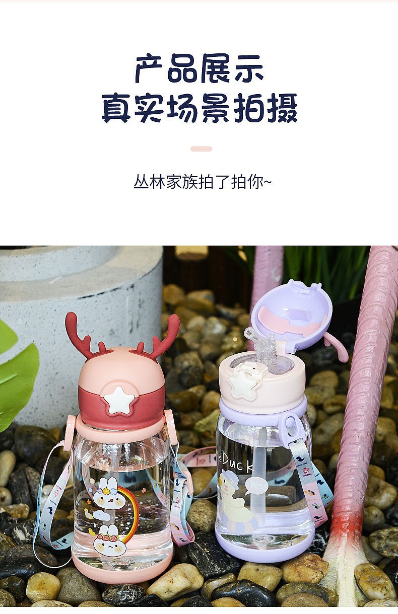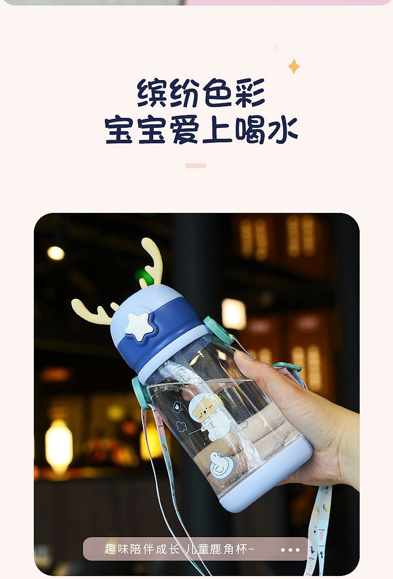 children's cups summer straw cup cartoon antlers large capacity big belly cup kindergarten water bottle student plastic cup