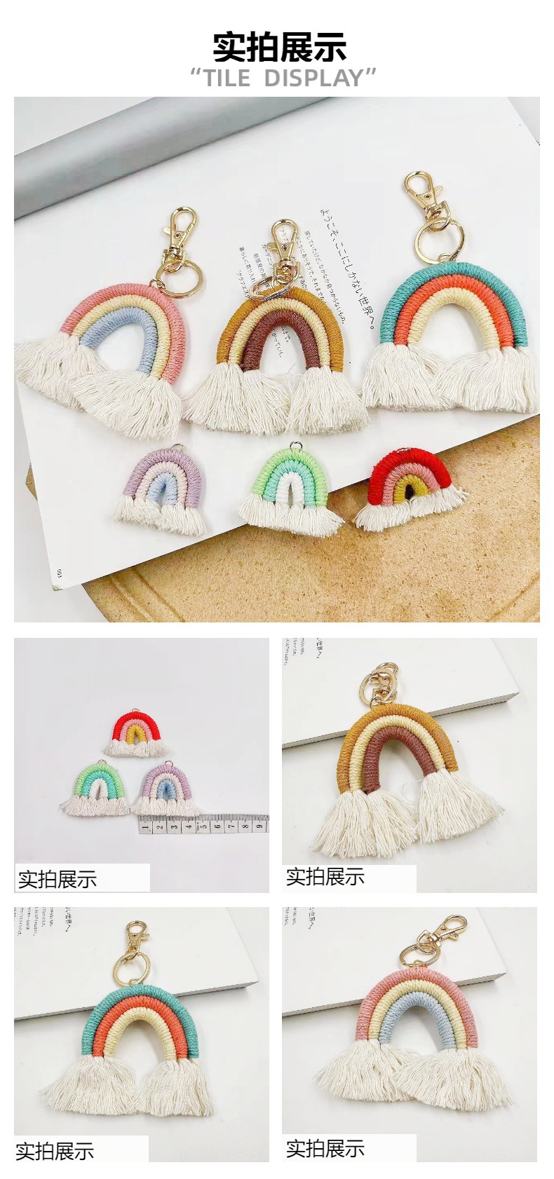 Creative European and American Hand-Woven Cotton String Rainbow Pendant Bag Tassel Earrings Accessories Finished Keychain Ornaments