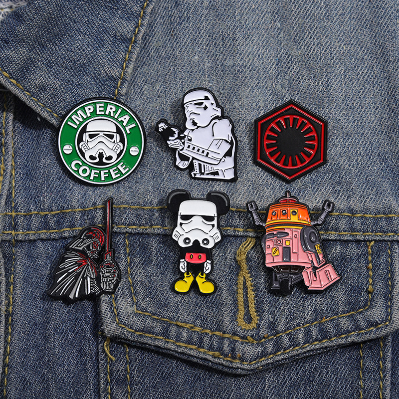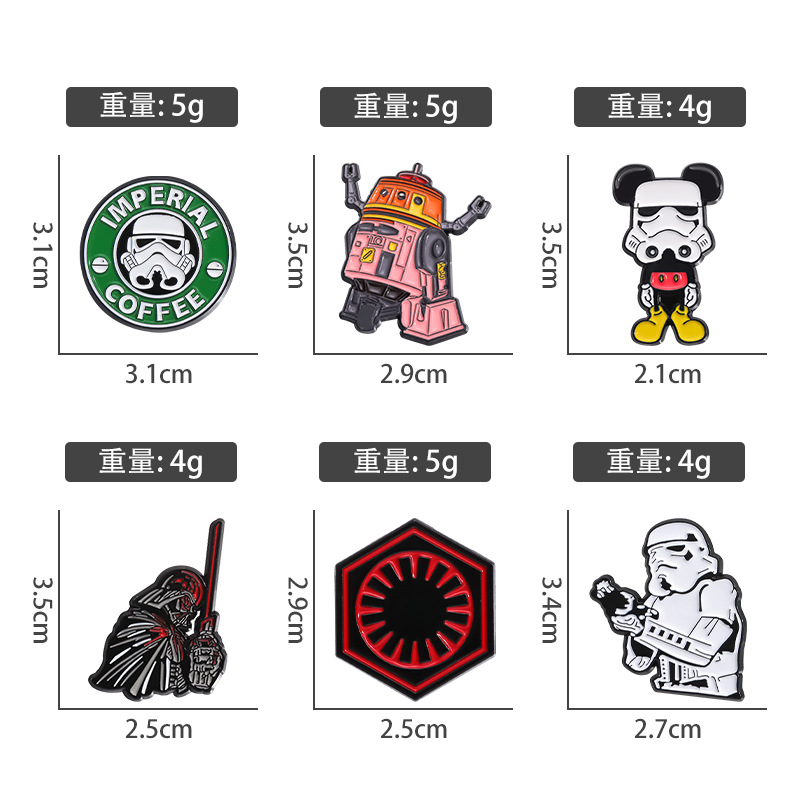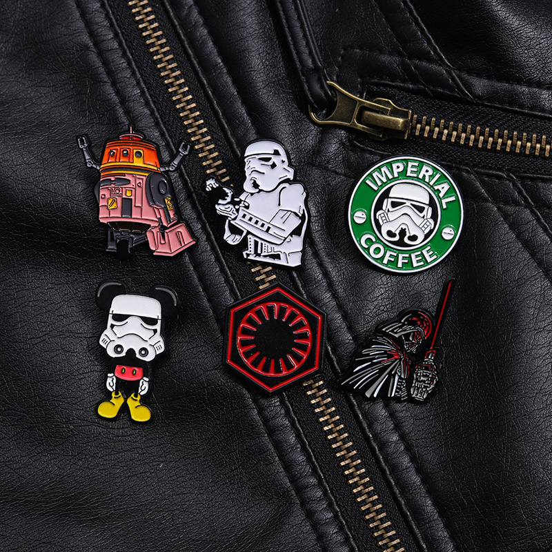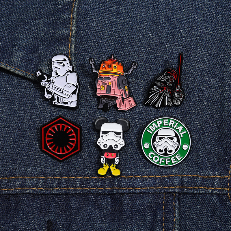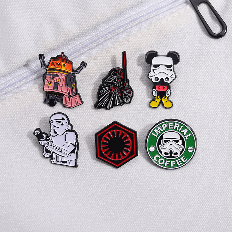 Personalized European and American Film and Television Movie Surrounding Brooch Creative Star Wars Series Robot Coffee Alloy Badge