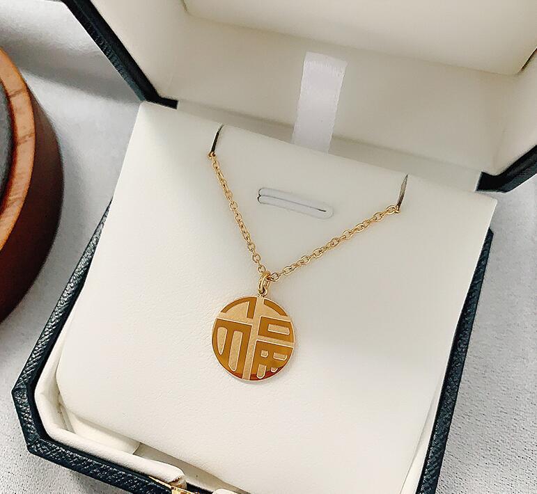 fu character real gold + 45cm titanium steel necklace