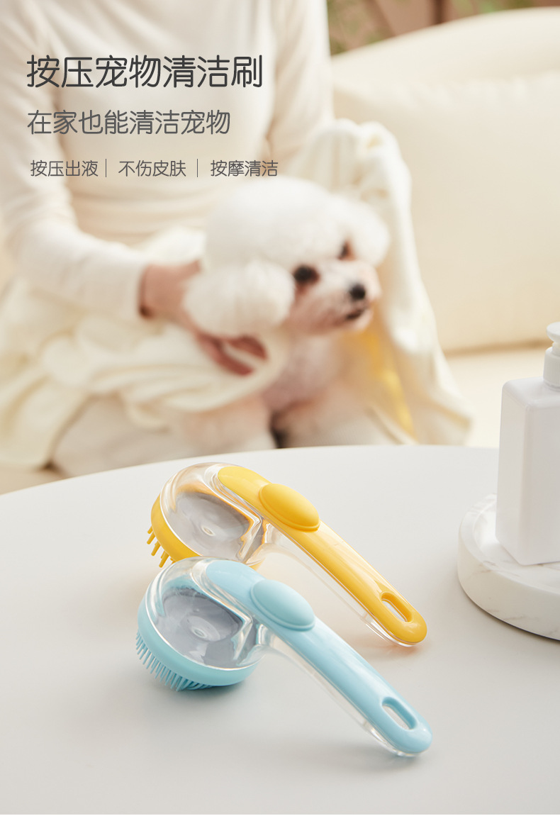 Pet Bath Brush Dog Bath Massage Brush Lengthened Handle Press Silicone Bath Brush Pet Bath Artifact