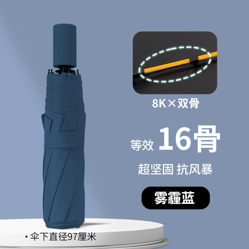 [16 bones ☆ double bones + reinforced version] 8k automatic sunny umbrella haze blue