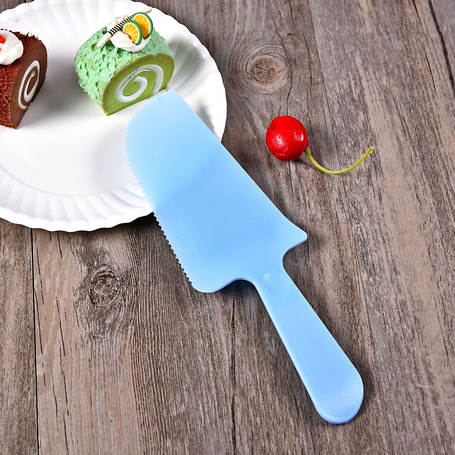 21 Customer Same Food Grade Plastic Material Cutter Frosted with Serrated Cake Knife Independent Packaging Disposable Knife and Fork