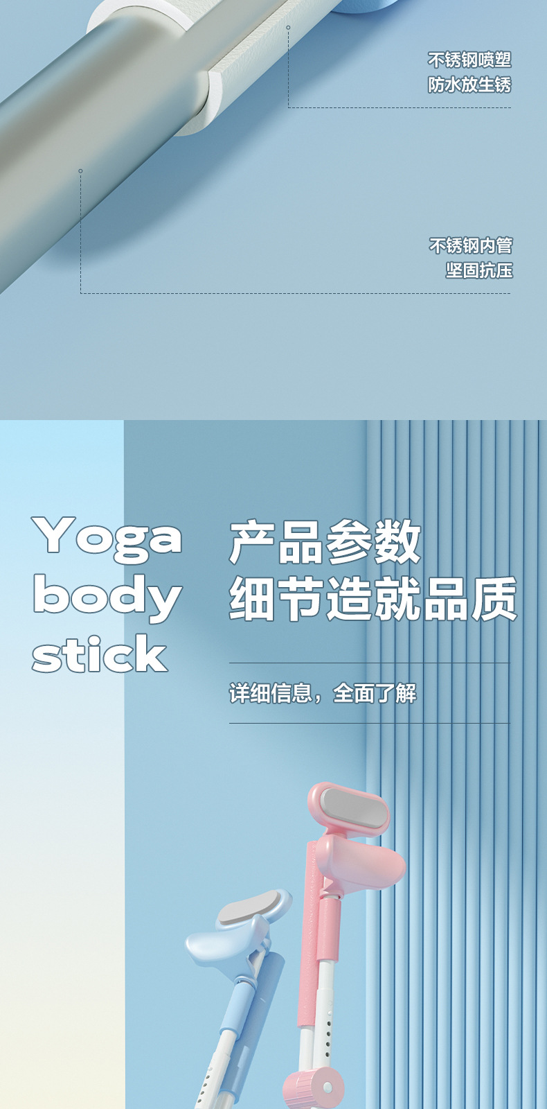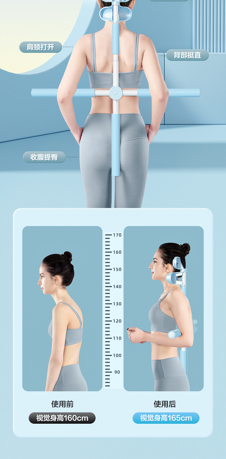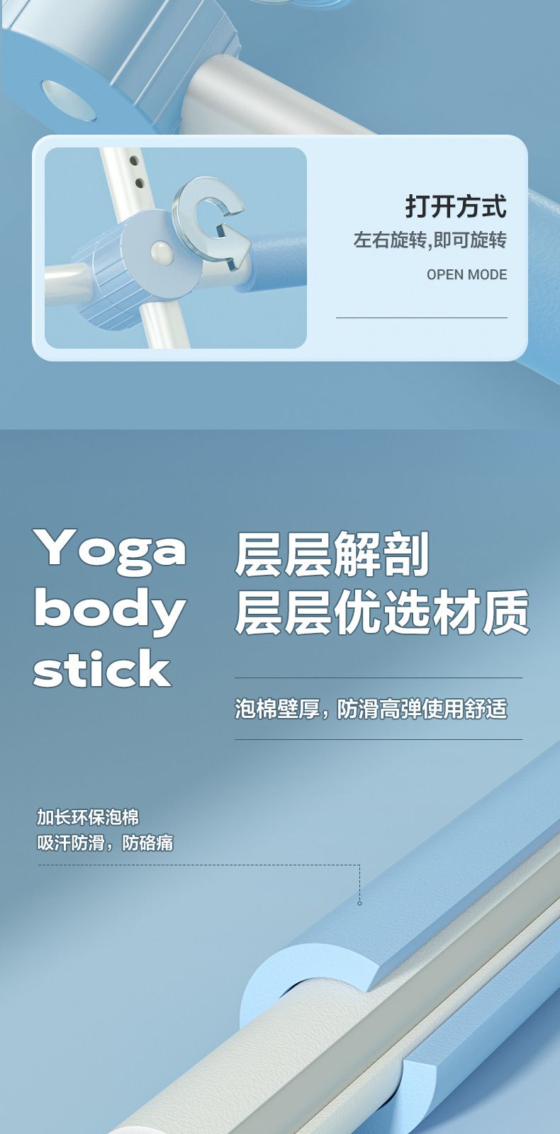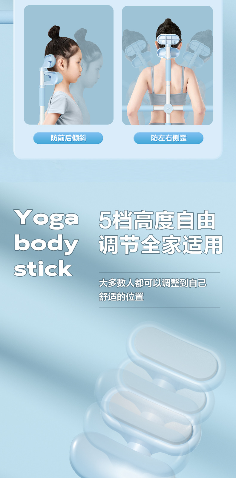 upgraded beautiful shoulder open back body yoga stick-blue
