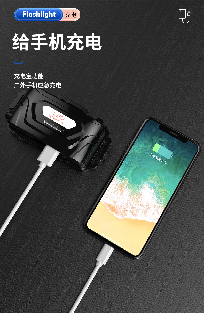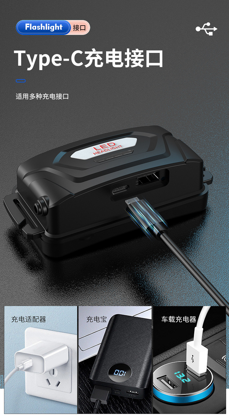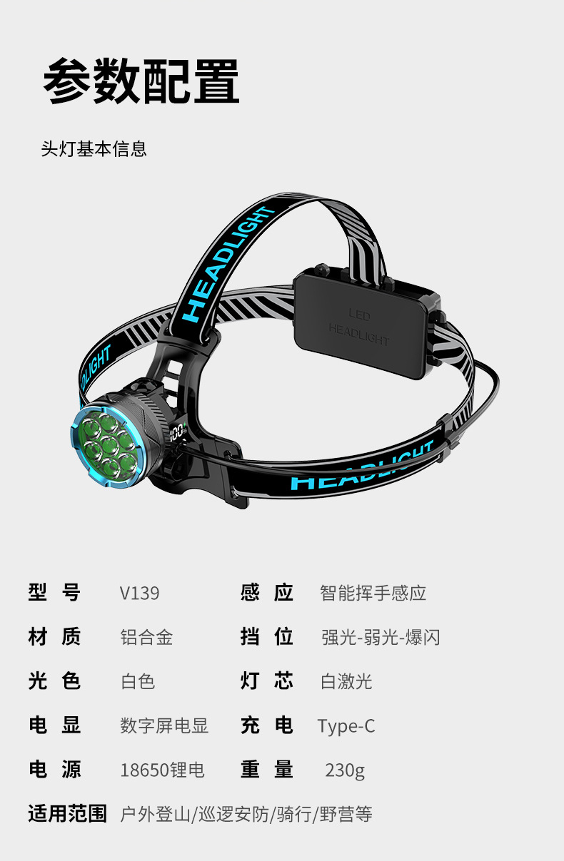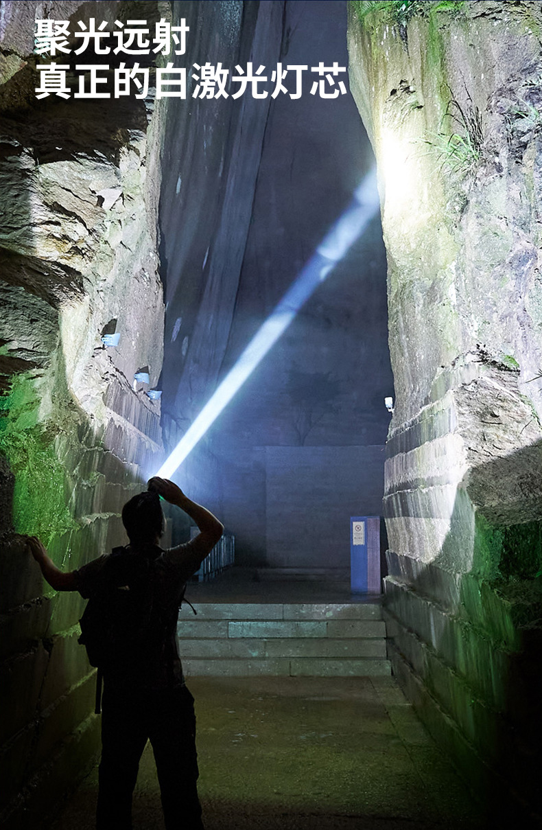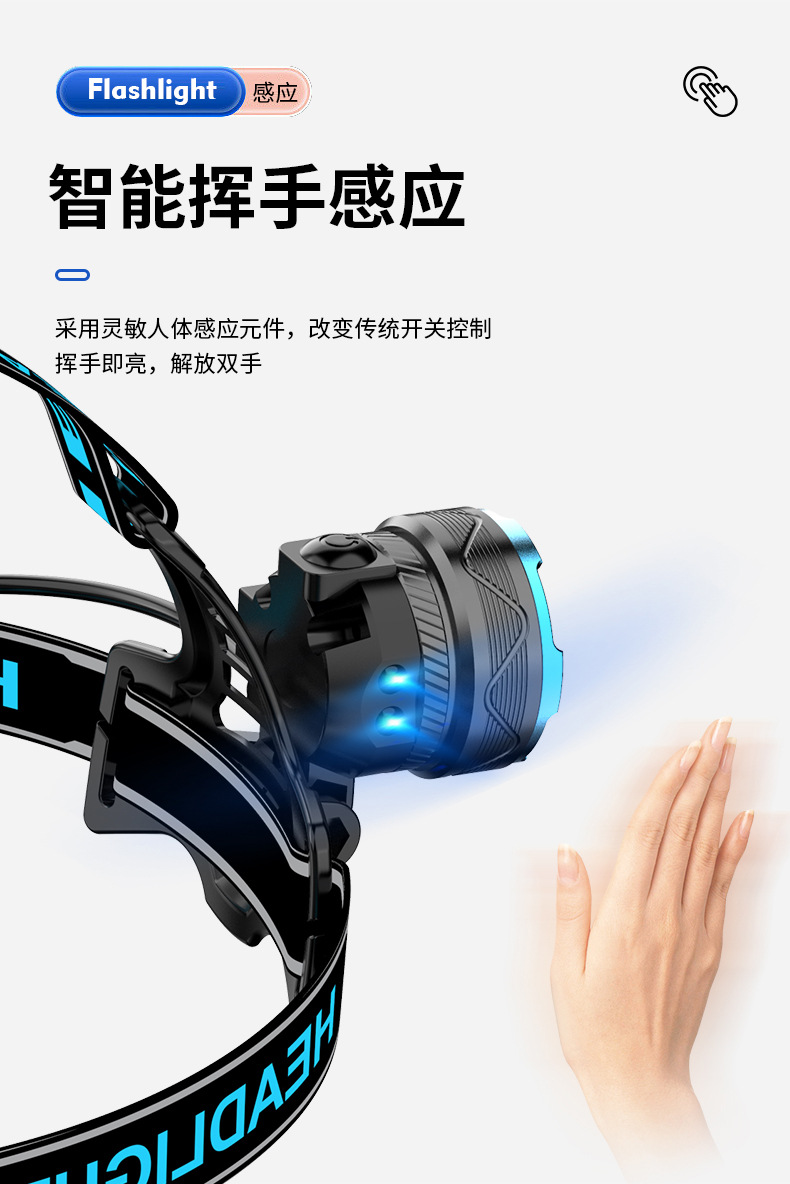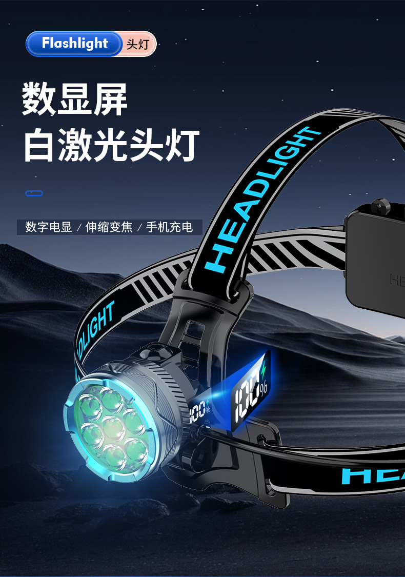 cross-border new hot outdoor wave induction electric display charging can be placed outside flashing white laser aluminum alloy headlight