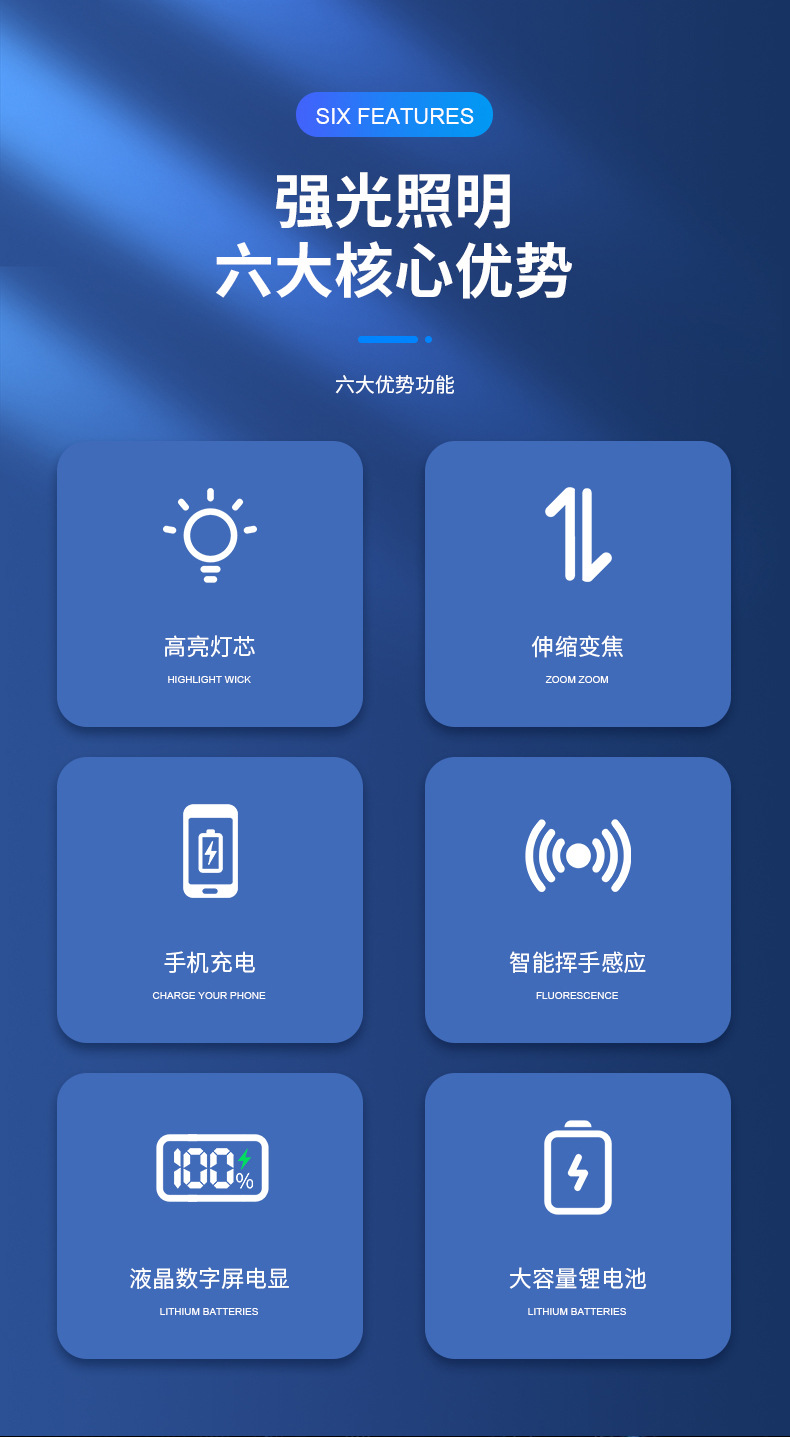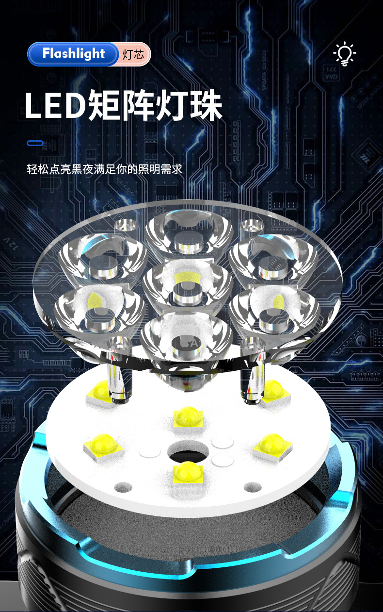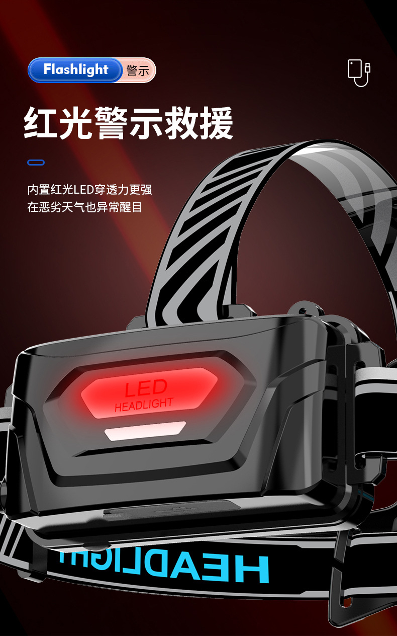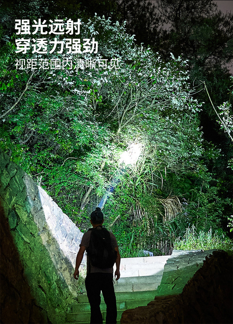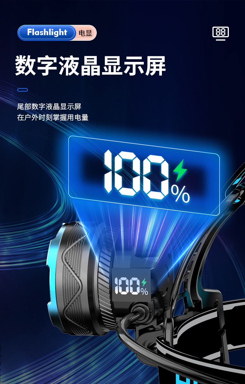 cross-border new hot outdoor wave induction electric display charging can be placed outside flashing white laser aluminum alloy headlight