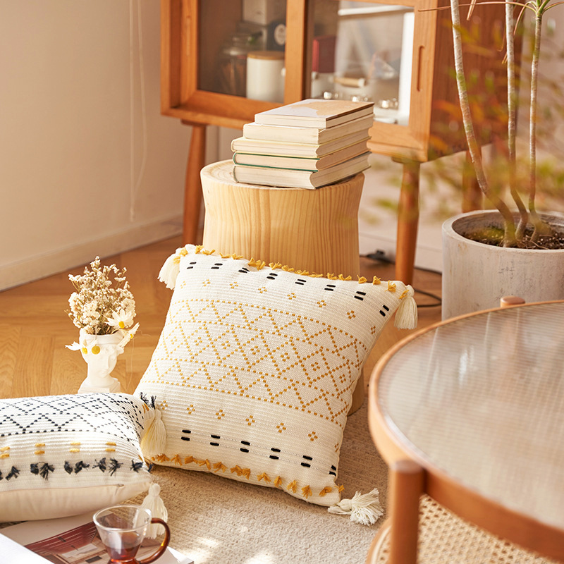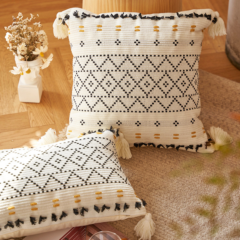 amazon bohemian geometric tassel pillow european and american living room sofa pillow knitted cotton pillowcase cushion