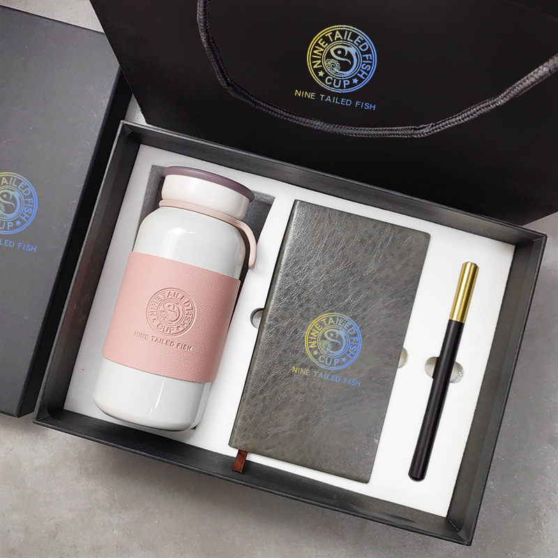 pink leather mug + book + pen