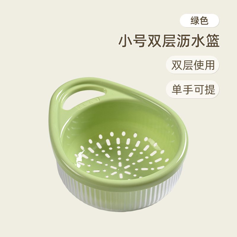 Kitchen Thickened Double-Layer Hollow Drain Basket Fruit and Vegetable Rice Washing Basket Multi-Functional Washing Vegetable Basket Portable Vegetable Basket Wholesale