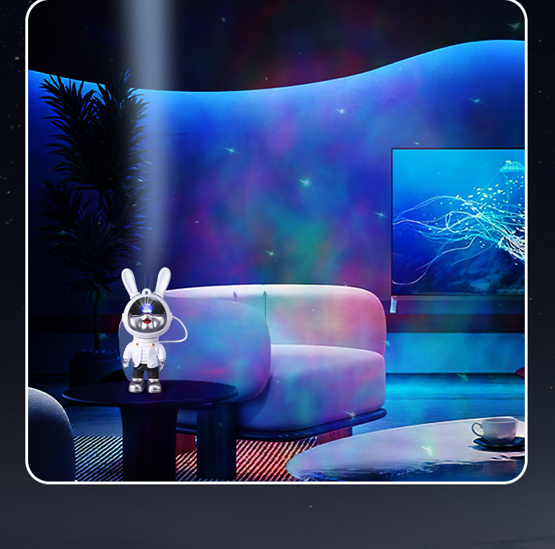 Popular Astronaut Space Rabbit Starry Sky Projection Lamp Starry Laser Ambience Light Decoration Small Night Lamp