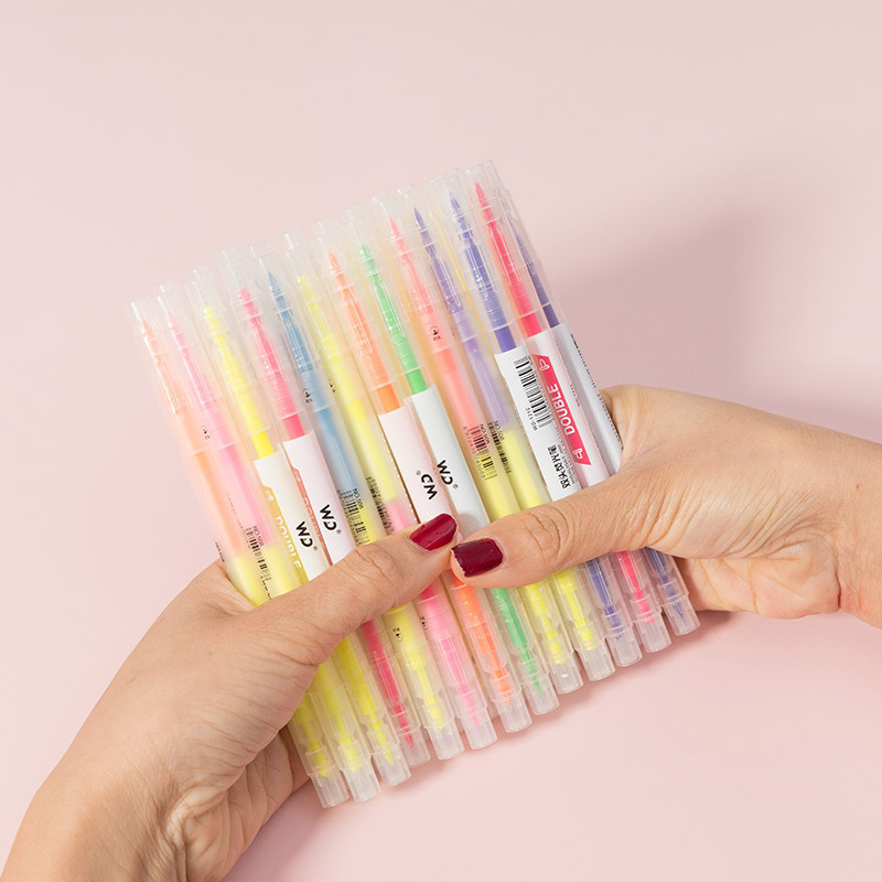 South Korea Creative Double-Headed Two-Color Fluorescent Pen 6-Piece Student Key Sentence Marking Pen Color Oblique Head Marker