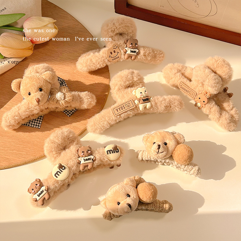 cute bear fur grip women's autumn and winter large hair volume more than shark clip barrettes back head hairpin headdress hair accessories