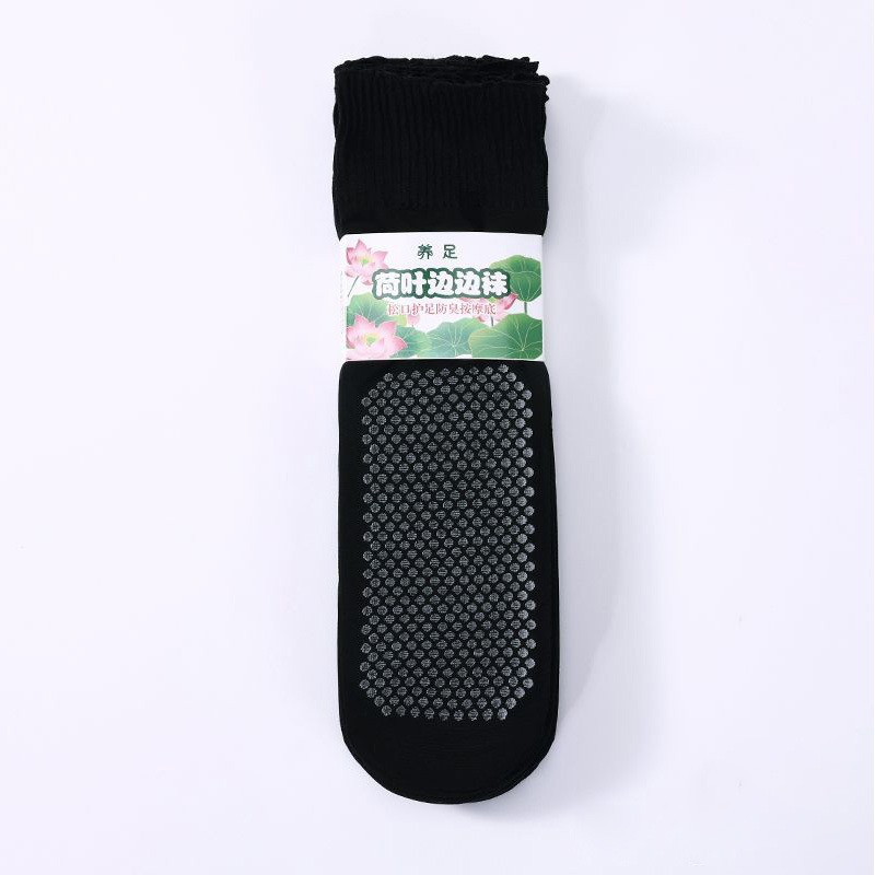 massage footbed socks with non-binding top black