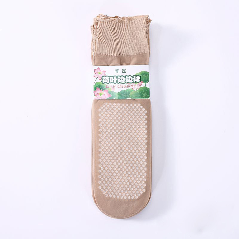 massage footbed socks with non-binding top skin color