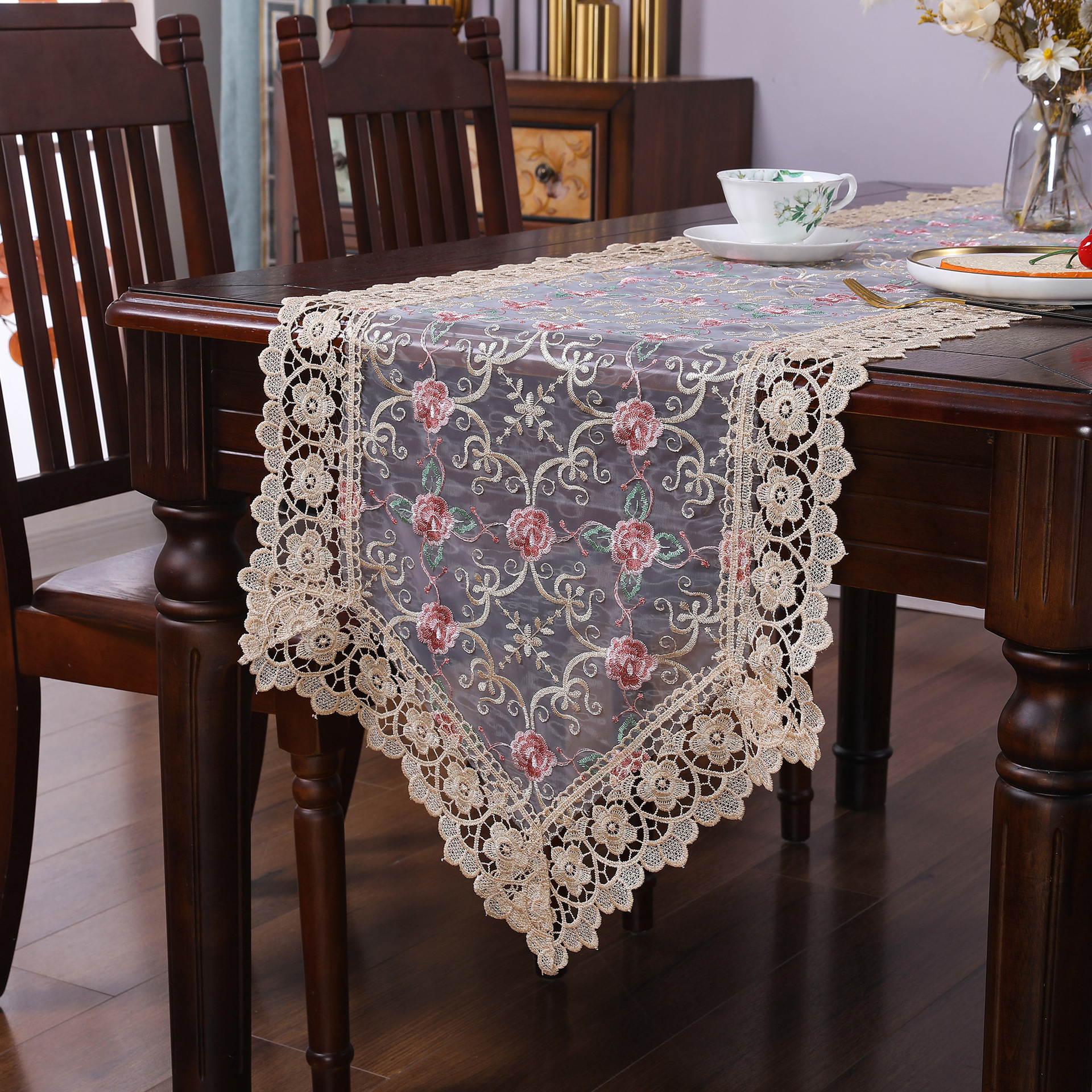 new lace table runner glass yarn high needle flower embroidery placemat tv cabinet household fabrics decorative table runner