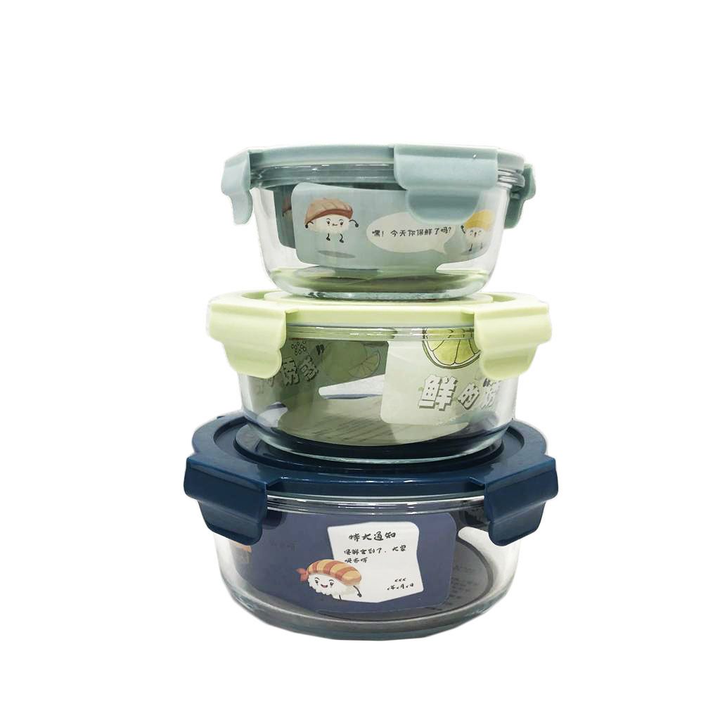 High-end circular glass storage box/borosilicate glass storage box with air holes/advertising gift storage box is made of high-quality food-grade PP+borosilicate glass material. The material does not contain BPA (BPA free). The storage box can withstand high temperatures up to 120 degrees and low temperatures down to minus 20 degrees. It is used for the storage and storage of food, fruits, wet and dry goods, and leisure foods. Its heat-resistant, hygienic, and non-fracture characteristics can also be used in microwave ovens, dishwashers, refrigerator refrigerators, and freezers. It will not release toxic components when heated. It is suitable for storing various foods for easy storage and carrying, making it an ideal household daily product. The storage box can be heated in the microwave oven (open the lid), so you can eat hot meals and hot dishes anytime and anywhere. The outstanding sealing property allows you to carry it with confidence even when you go out, and even if the lunch box is upside down, you don't have to worry about the soup leaking out, and it can also ensure the isolation of the food, preventing cross-contamination, and outstanding performance can prevent food contamination, isolating it from the outside world, effectively extending the freshness of the food. It is your good helper for work, office, school, work, outdoor travel picnics, etc.