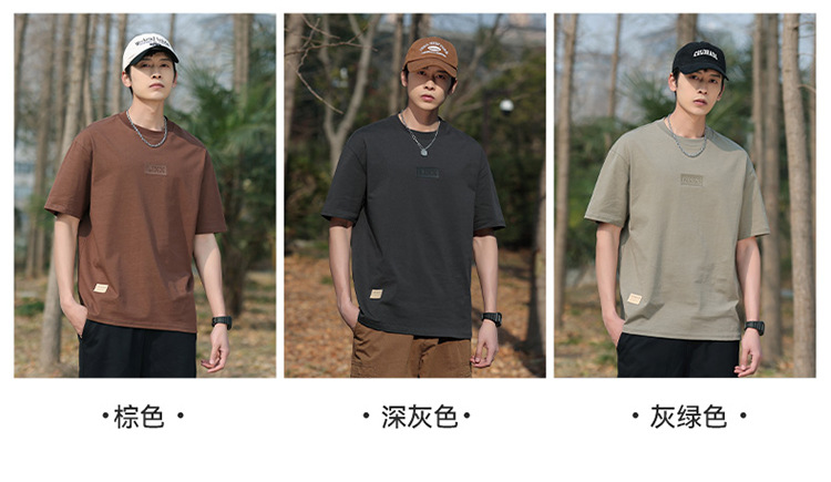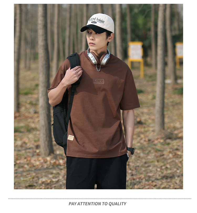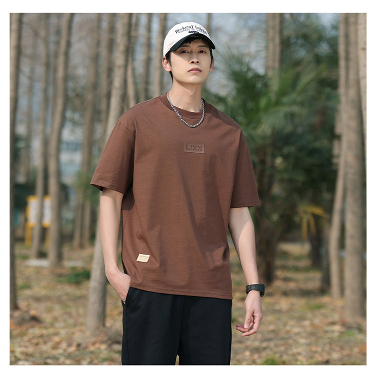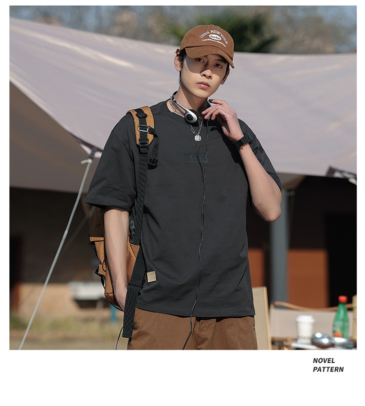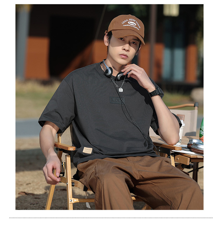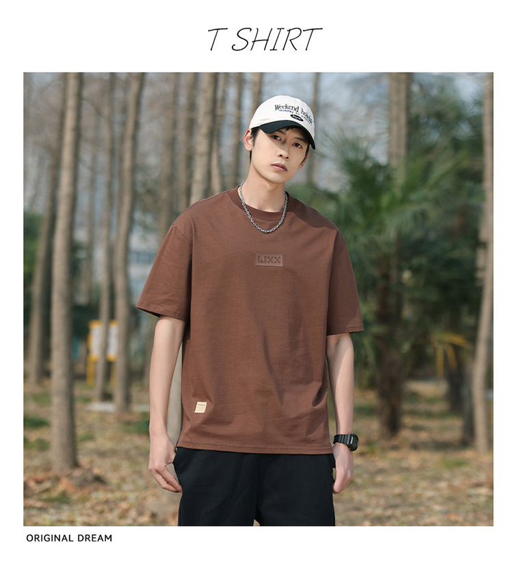 short sleeve boys simple japanese style all-matching letter crew neck t-shirt 2024 summer half sleeve american heavy cotton t-shirt