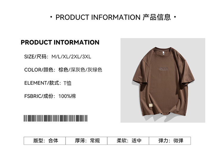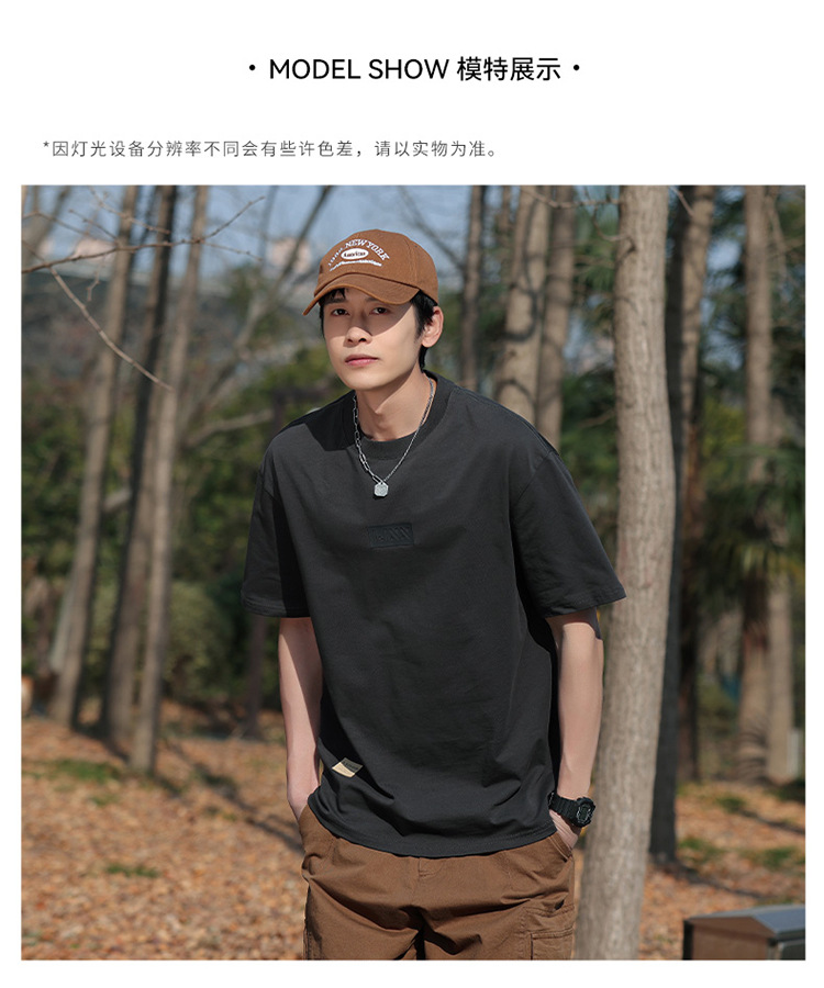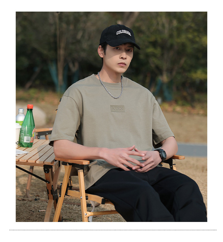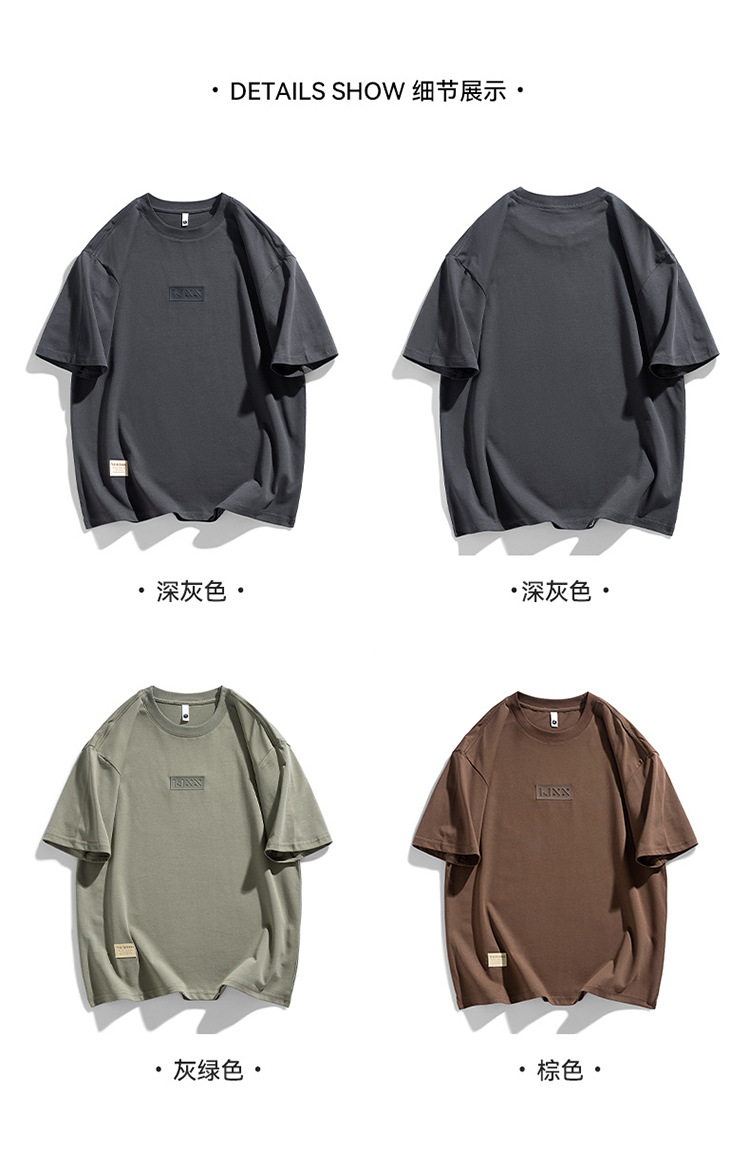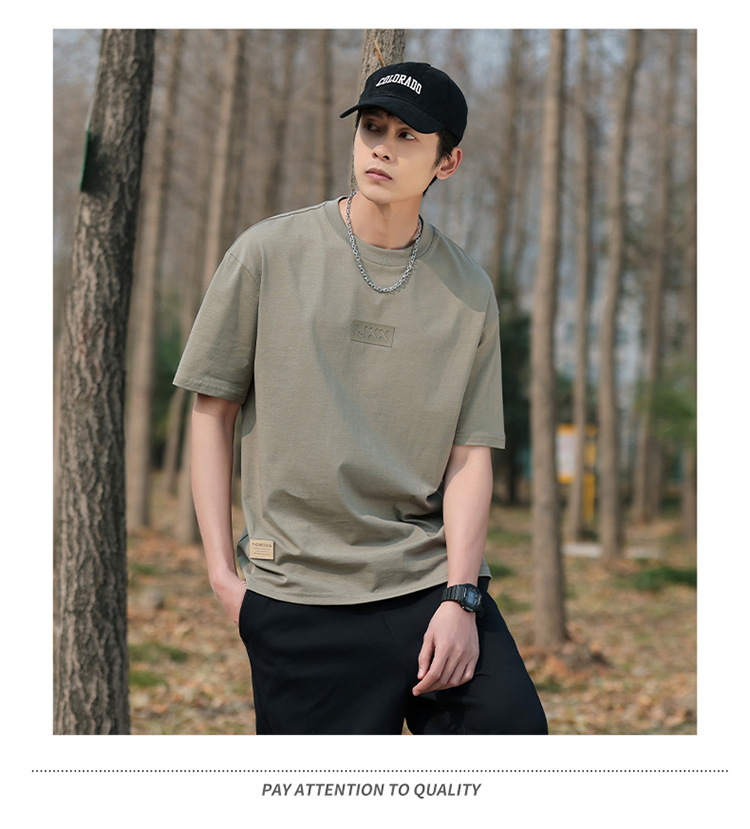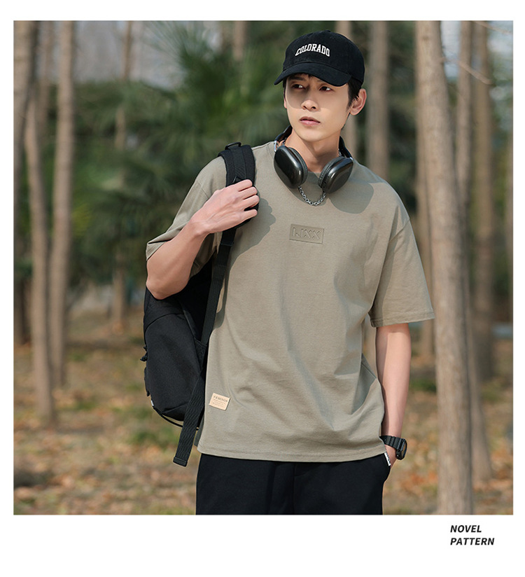 short sleeve boys simple japanese style all-matching letter crew neck t-shirt 2024 summer half sleeve american heavy cotton t-shirt