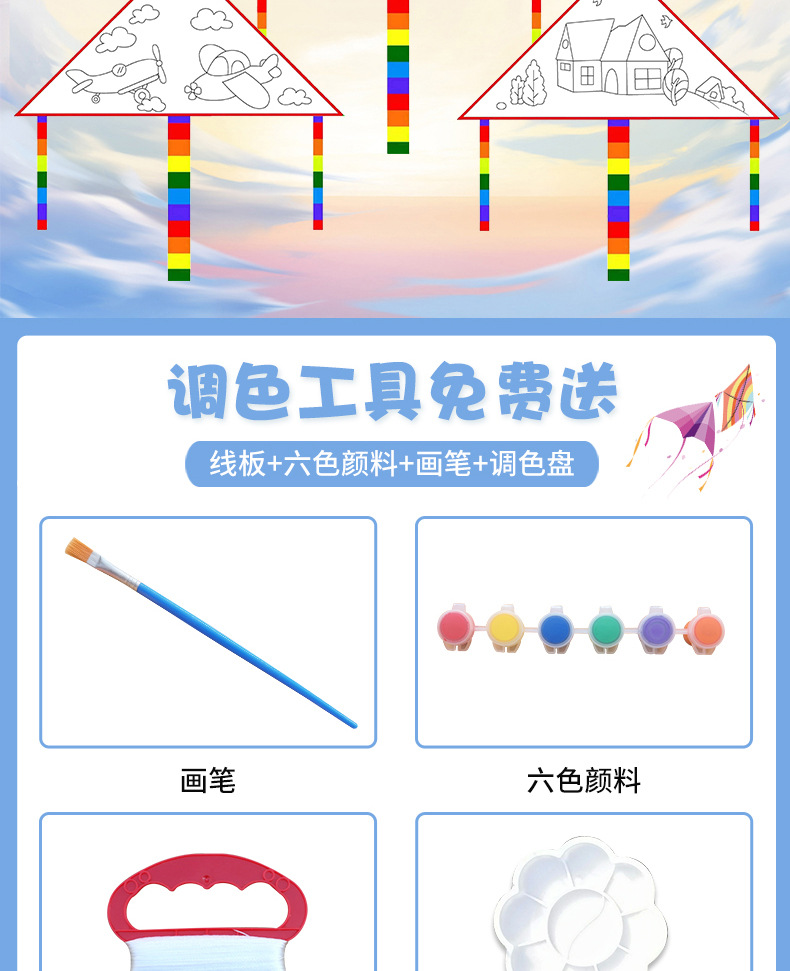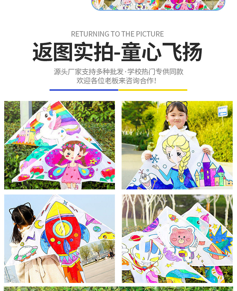 Weifang DIY Kite Material Package Children Blank Painting Color Filling Color Applying Doodle Hand Drawn Stall Kite Wholesale