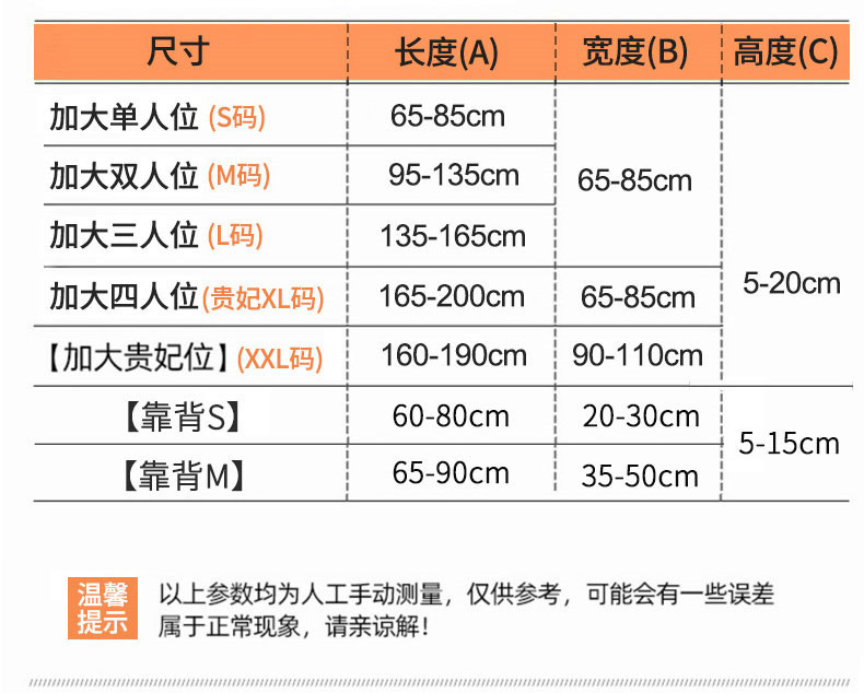 | plus-sized four people xl: cushion width (65-85cm)* cushion length (165-200cm) | CN¥ 24.5 | 5000 set available |